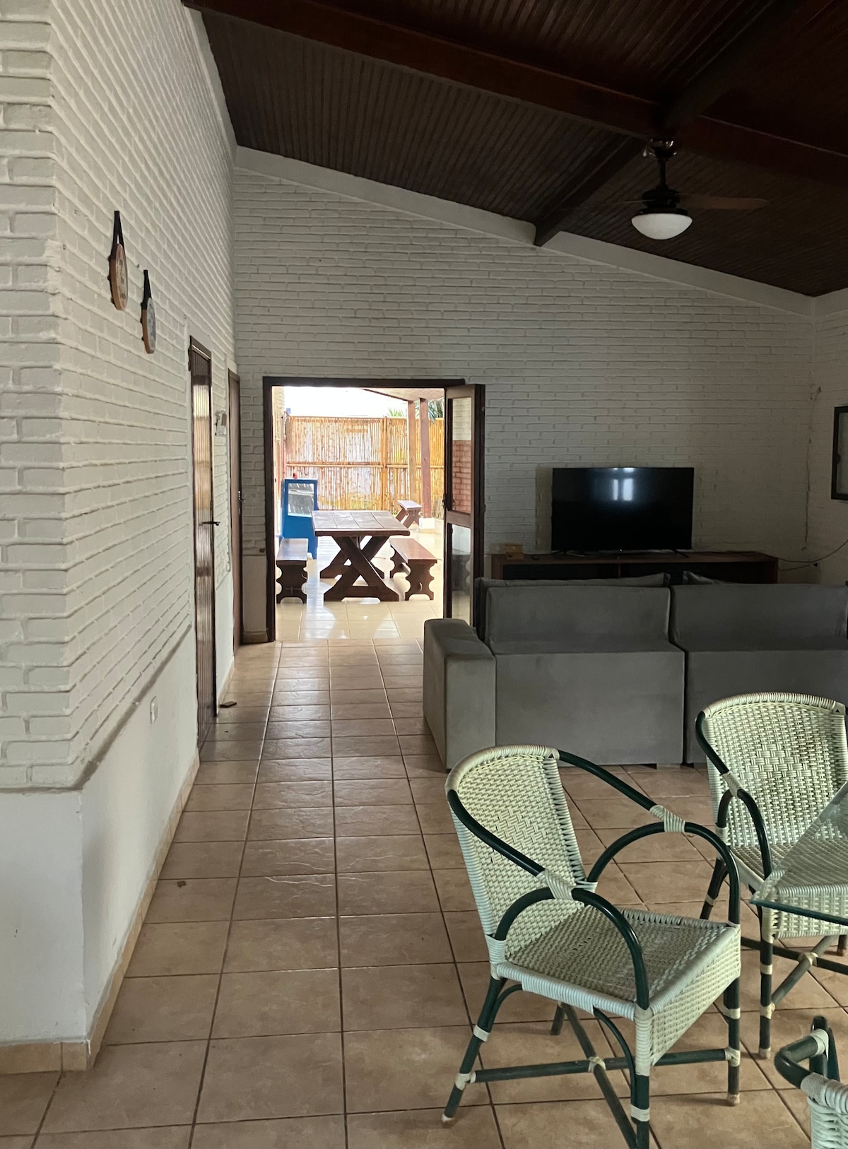 Oubliez vos soucis dans ce logement spacieux et serein, à l aire rustique, confortable et pratique . À 5 minutes à pied de la plage de Guaiúba, maison spacieuse avec quatre suites, indépendantes , longé par une terrasse couverte qui rejoint un ample salon. Un endroit convivial pour être entre copains ou famille. La plage de Guaiúba se situe entre deux belles vallées avec une mer calme, idéal pour les enfants. À quelques kilomètres du centre-ville. Possibilité de late check out.