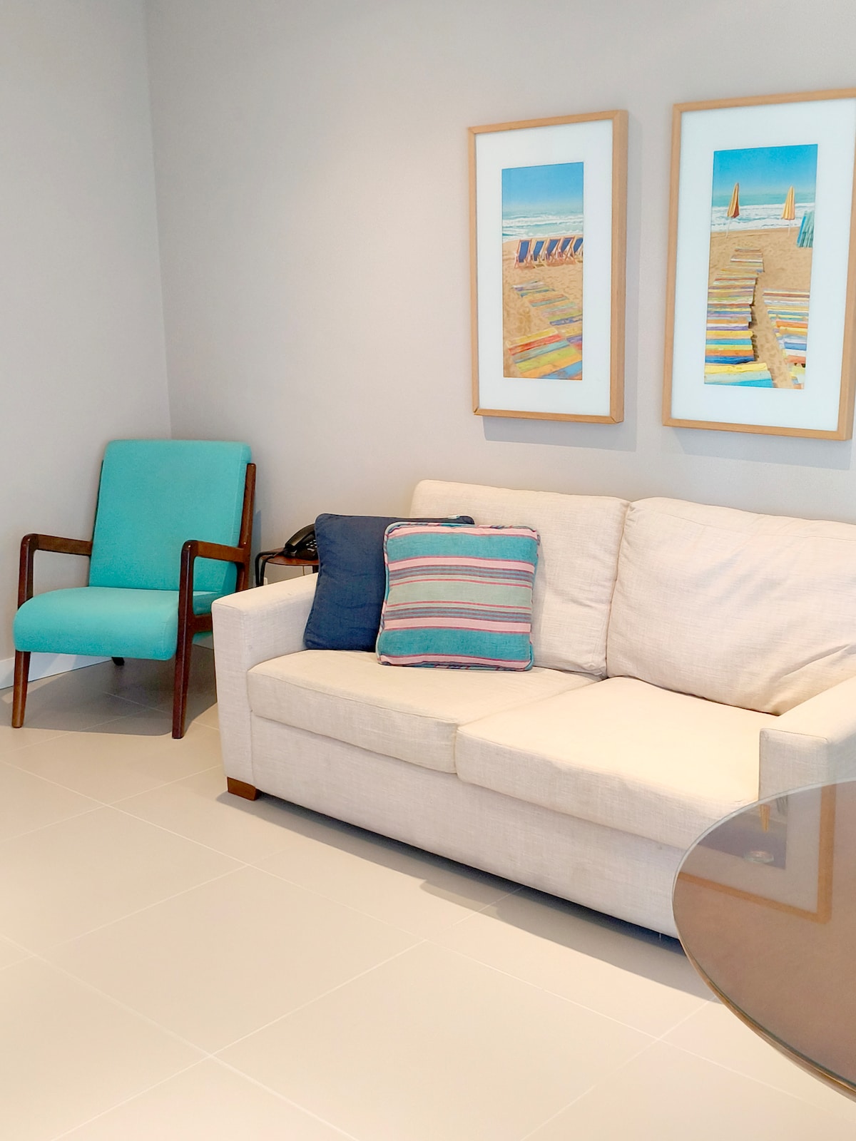 Be enchanted by this space. It combines the comfort of a hotel with the versatility of a flat, with an electric oven, coffee maker and minibar. Daily cleaning, swimming pool and beach service. It is worth mentioning the gym and the gourmet space open from Wednesday to Sunday, in addition to the paid parking on site. Your space in Enseada, Guarujá, in front of the beach and next to the Dona Eva restaurant, which offers breakfast, beach service and meals.