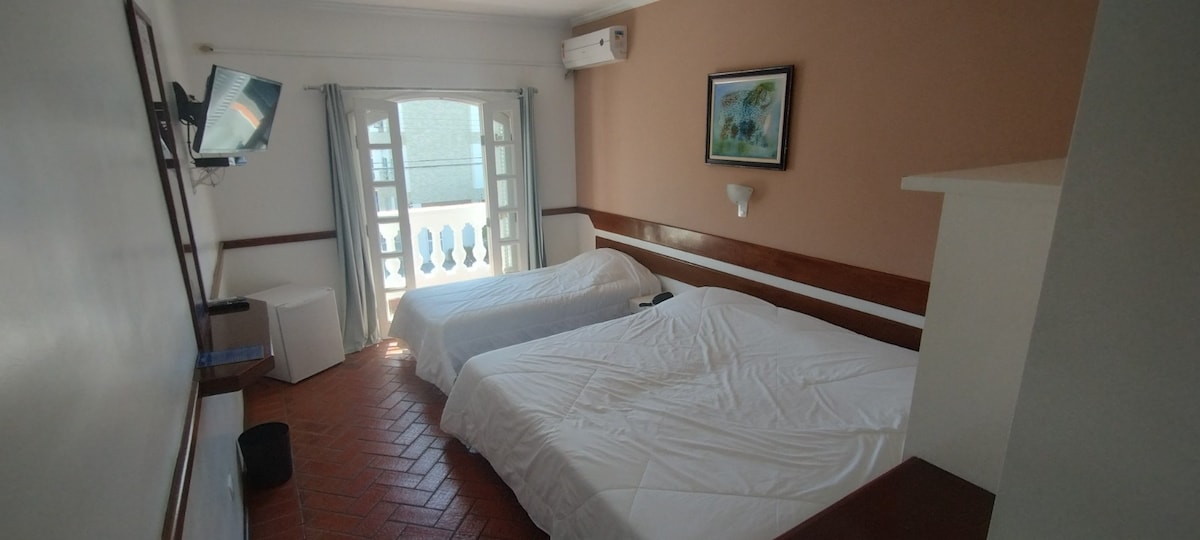 Encante-se com este lugar para ficar. Na Pompéia, quadra da praia, 3 min de caminhada, quarto com cama King, banheiro privativo, serviço de hotel, próximo de uma enorme variedade de comércios, shoppings , bares, restaurantes, farmácias, banco, enfim tudo o que vc precisar. Da para fazer tudo literalmente a pé. Estacionamento pago no local com uma taxa de 30$ dia , o hotel tbm dispõe de um delicioso café da manhã pagos à parte por um valor de 38$ por pessoa que não estão inclusos na hospedagem.
