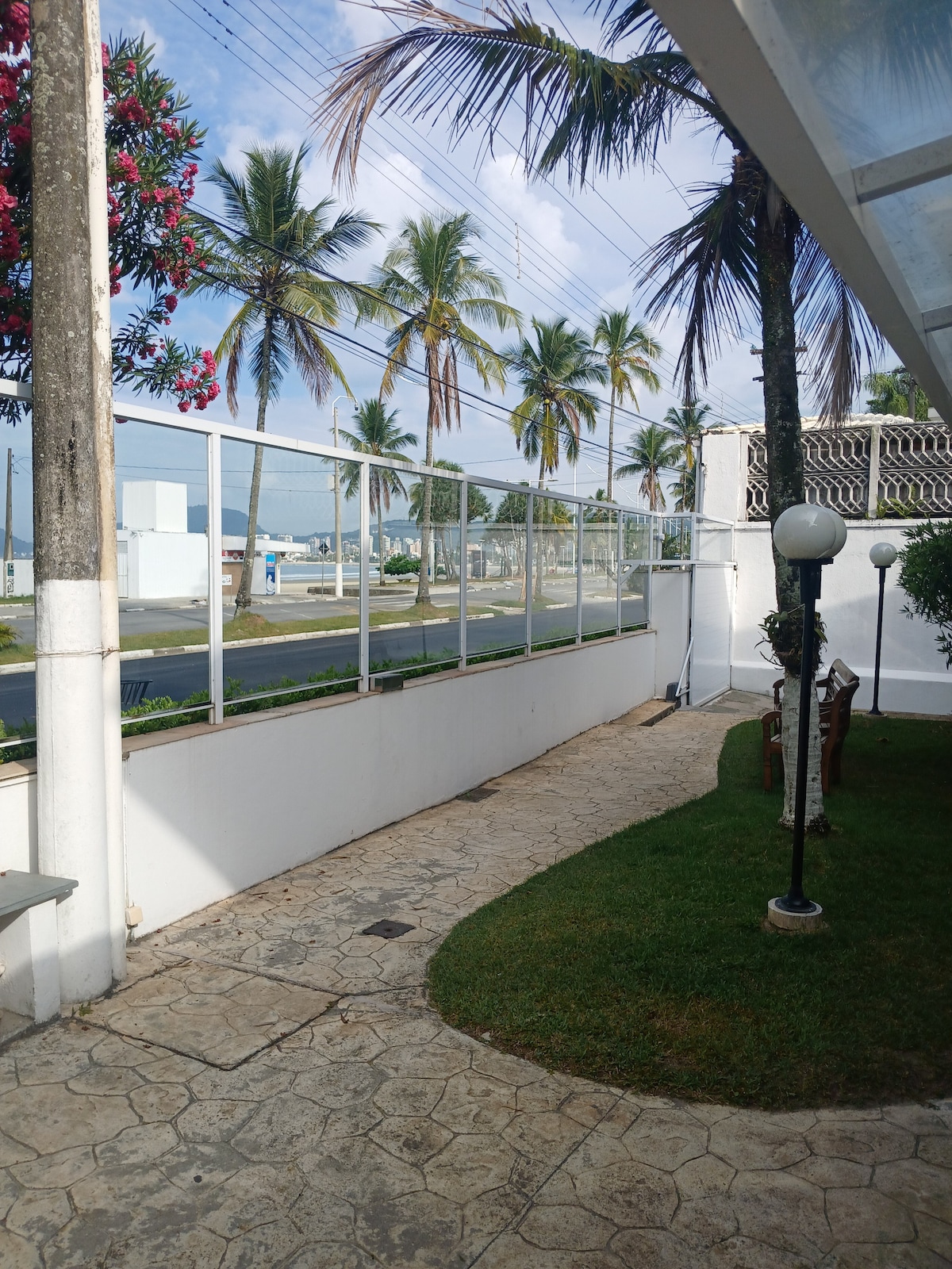 This house is located near Pernambuco`s Beach (about 5 minutes at foot) inside a safe closed neighborhood as it is well controled by a security personal inside it during the 24 hours. It is a little far from the main downtown, yet it has a good accessibility since the main route that cross the neighborhood can take you pretty fast to it and also to the towns nearby (Santos). It is a nice place for anyone who is looking forward to relax. The recommended way for displacement around is by car.