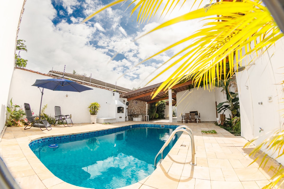 Casa Guaruja,游泳池,距离海滩500米,步行7分钟