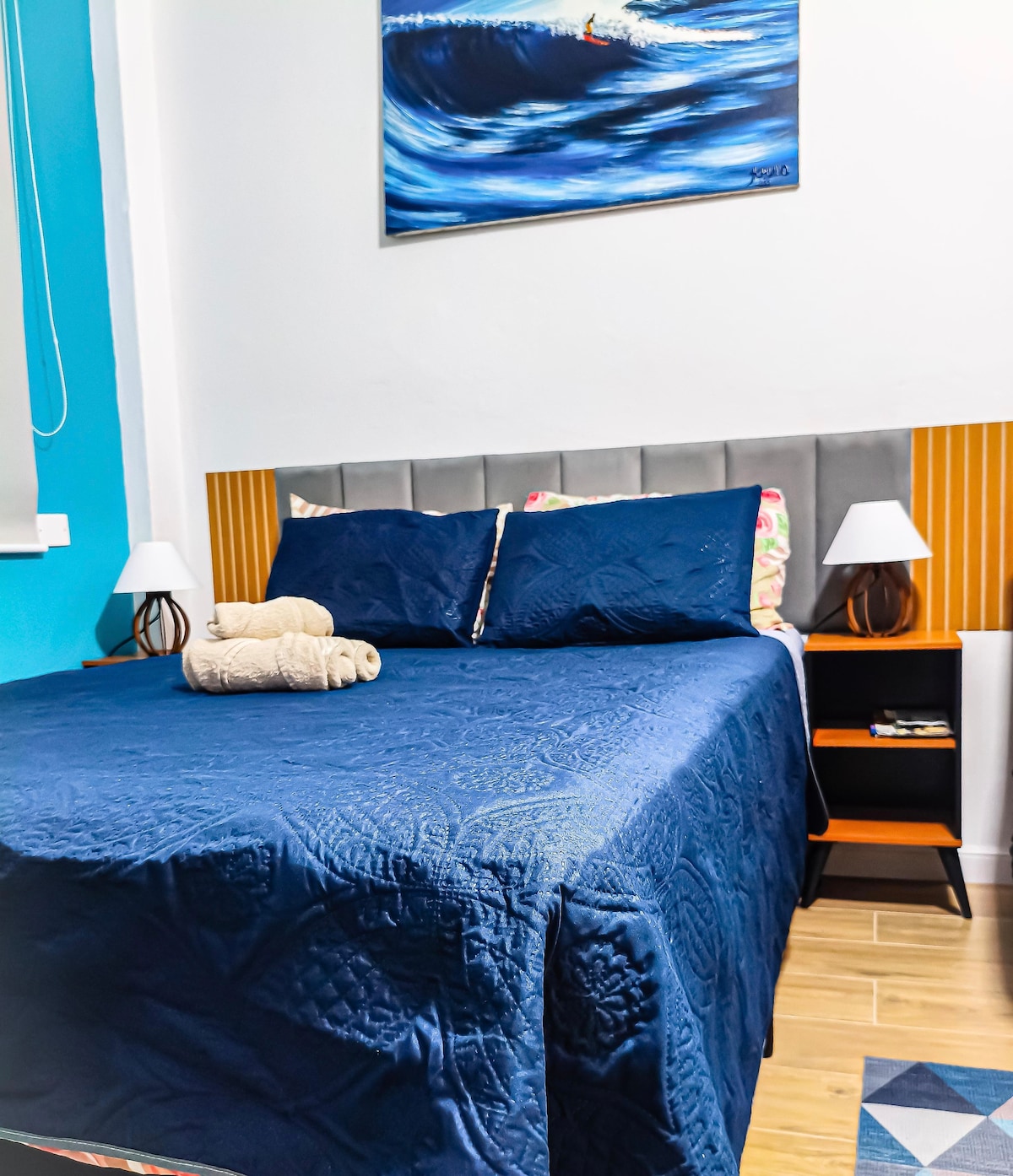 Sol, mar, o cheiro de maresia no ar, os sons da vida acontecendo lá fora enquanto famílias vêm e voltam da praia e de seus passeios. Nosso prédio de frente pro mar vai trazer pra você aquela sensação boa de viagem pra praia! Aqui você vai ter um lugarzinho aconchegante para descansar e se precisar, tem o supermercado Pão de Açúcar ao lado do prédio. E, pra quem não quiser descansar, o apartamento é próximo de diversos bares e restaurantes onde você pode aproveitar a vida noturna de Santos!