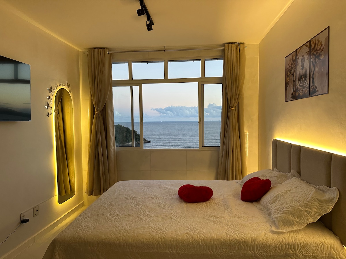 🏖️ Flat Pé na Areia – o mar é o seu quintal! Acorde com o som das ondas, sinta a brisa e o sol entrando pela janela. 🌞 Alexa cuida do ambiente — você só relaxa! Cozinha completíssima: air fryer, cafeteira Dolce Gusto, grill e fogão. Cama super confortável, TV Smart, Wi-Fi rápido, ar-condicionado e Garagem. Aceitamos PETS 🐾. Perfeito para casais, quem ama curtir o mar de verdade. A poucos passos da areia e pertinho de tudo: restaurantes, farmacia sorveterias e mercados! 🌊😎