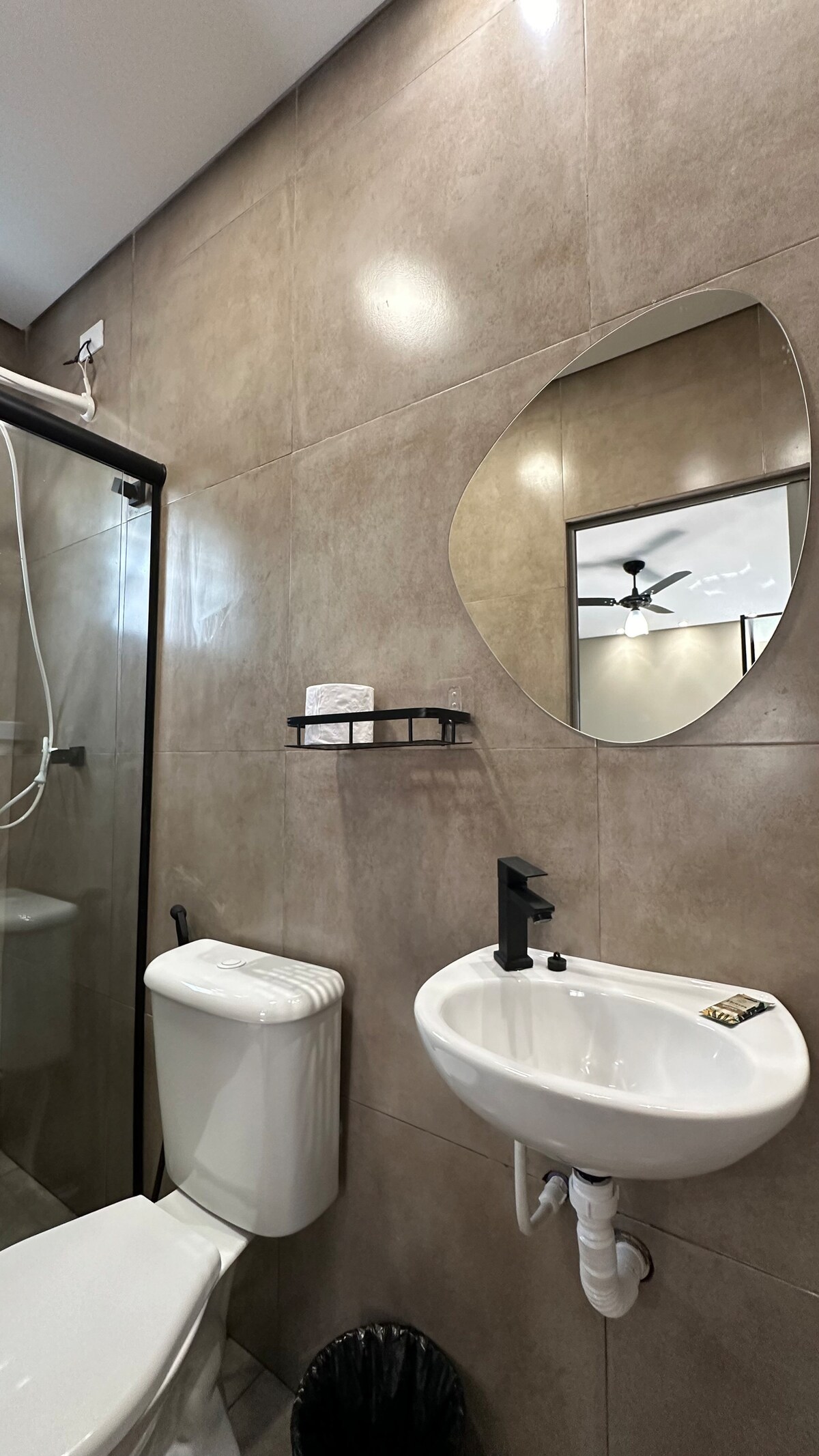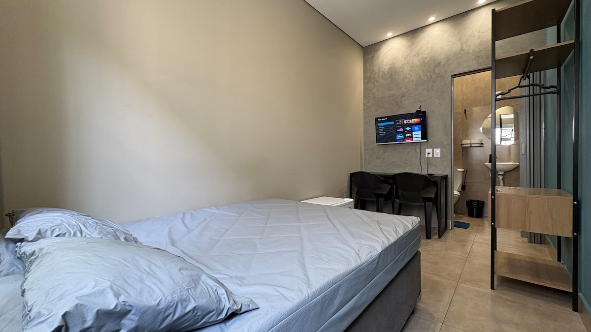 Suíte toda mobiliada, -Cama de casal -Beliche - Ar condicionado -TV -Netflix -Ventilador - Internet -Microondas - Utensílios de cozinha -Cafeteira - Geladeira -Chuveiro elétrico -Garagem coberta para carro e moto Apenas 15 minutos de carro ou moto até as praias Pitangueiras, Astúrias e Enseada no Guarujá SP, ambiente totalmente familiar Relaxe com toda a família nesta acomodação tranquila