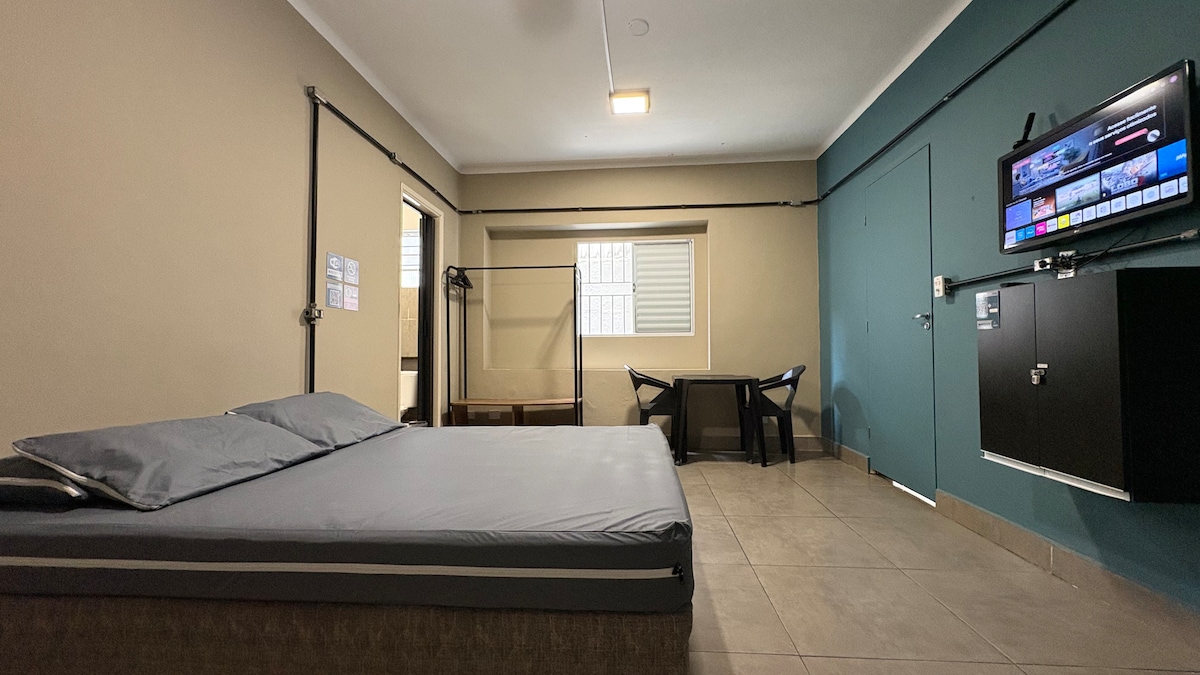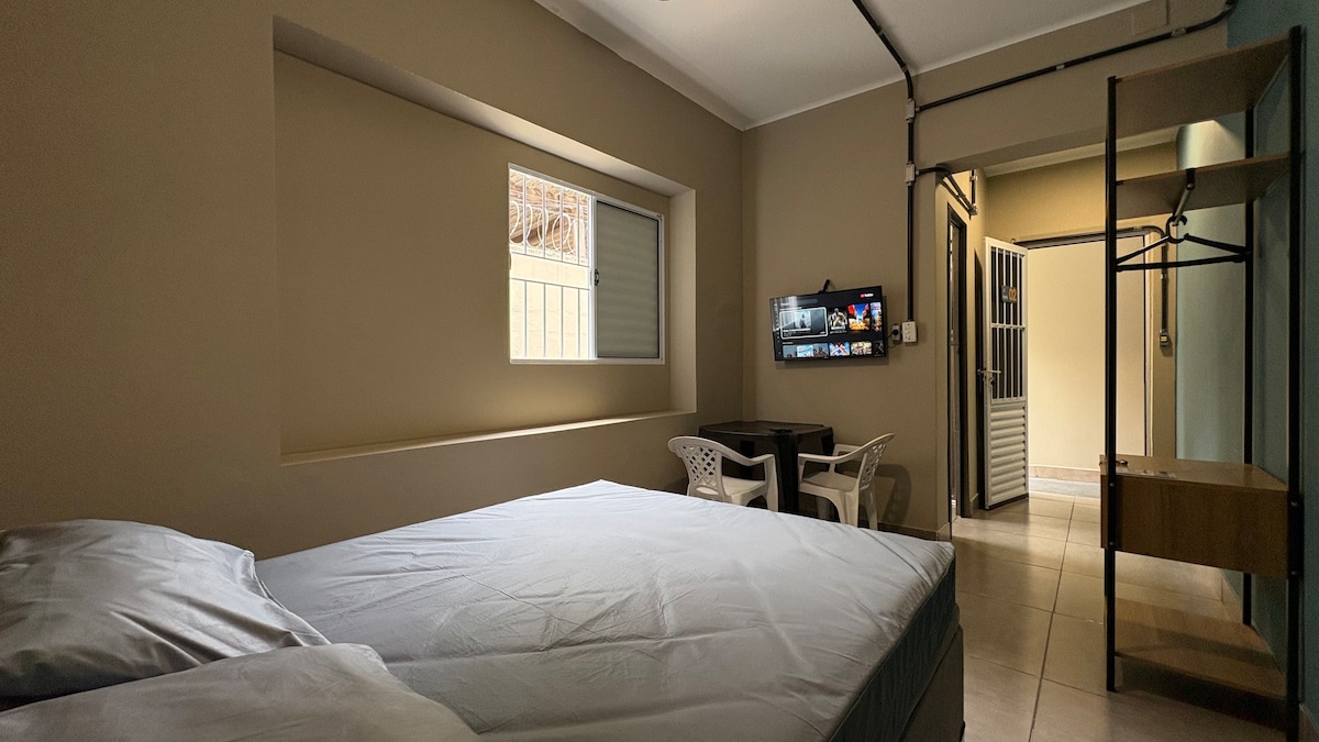 * Horário de checkin flexível porém a partir da entrada a diária são 24 horas. *Kitnet ideal para quem quer ter um espaço para banho, refeição e descanso noturno. Situa-se nas casas populares do BNH, rua asfaltada. *Colchão e travesseiros protegidos por capas, que são higienizados após cada checkout. *SEM VAGA DE GARAGEM PARA CARRO no interior do imóvel, pode estacionar na frente da casa. Cama com colchão de casal