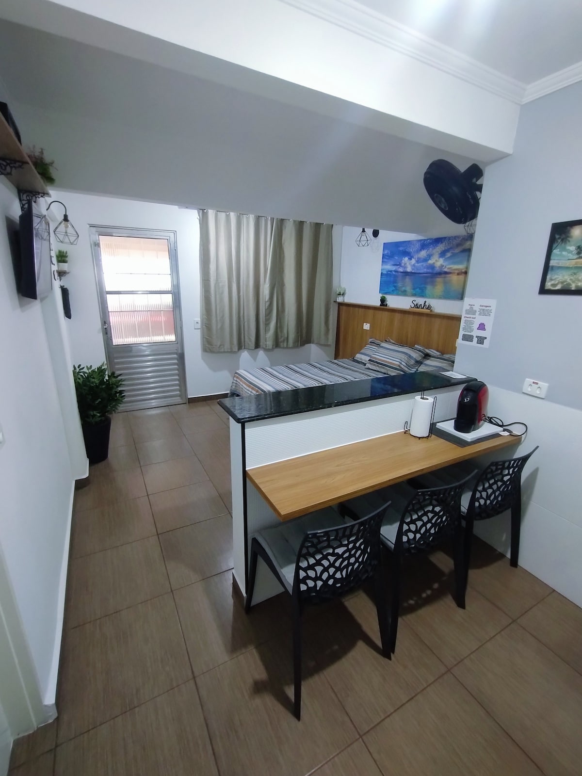 Suíte hospedagem com cozinha integrada Guarujá SP