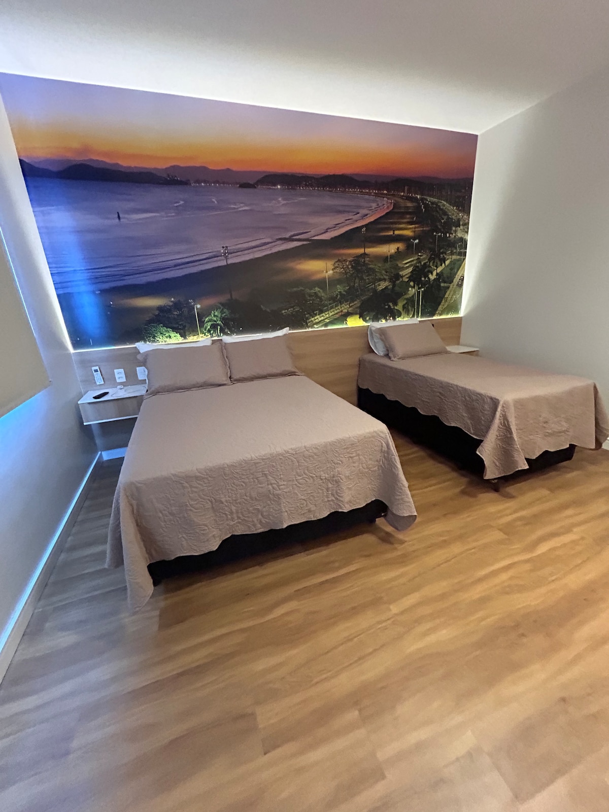 Apartamento completo no Gonzaga, Santos 🌊 a poucos passos da praia, andar mais alto, com vista-mar lateral privilegiada. Perfeito para casal ou família, com cama queen 🛏️, sofá-cama casal, ar-condicionado ❄️, Smart TV 📺, Wi-Fi, frigobar, micro-ondas e cafeteira ☕. Banheiro com chuveiro quente e ótima pressão 🚿. Prédio com piscina 🏊, academia (gym) 💪, sauna e mini mercado 🛒. Localização privilegiada perto da orla, restaurantes e comércio. Conforto e praticidade no melhor Airbnb em Santos.