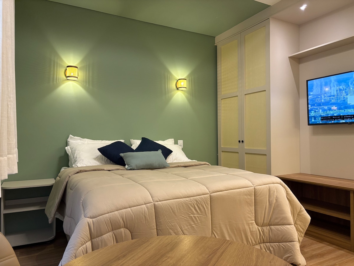 Bem-vindo ao seu refúgio à beira-mar! Este encantador studio totalmente modernizado, oferece uma experiência única de hospedagem no AirBnb, com uma vista para o quebra-mar de Santos. Localizado em um Flat à beira-mar, este espaço foi cuidadosamente decorado para garantir o máximo conforto e relaxamento para até 2 hóspedes e 01 bebê. "Não perca a oportunidade de se hospedar neste refúgio à beira-mar" Reserve agora mesmo e comece a criar memórias inesquecíveis.