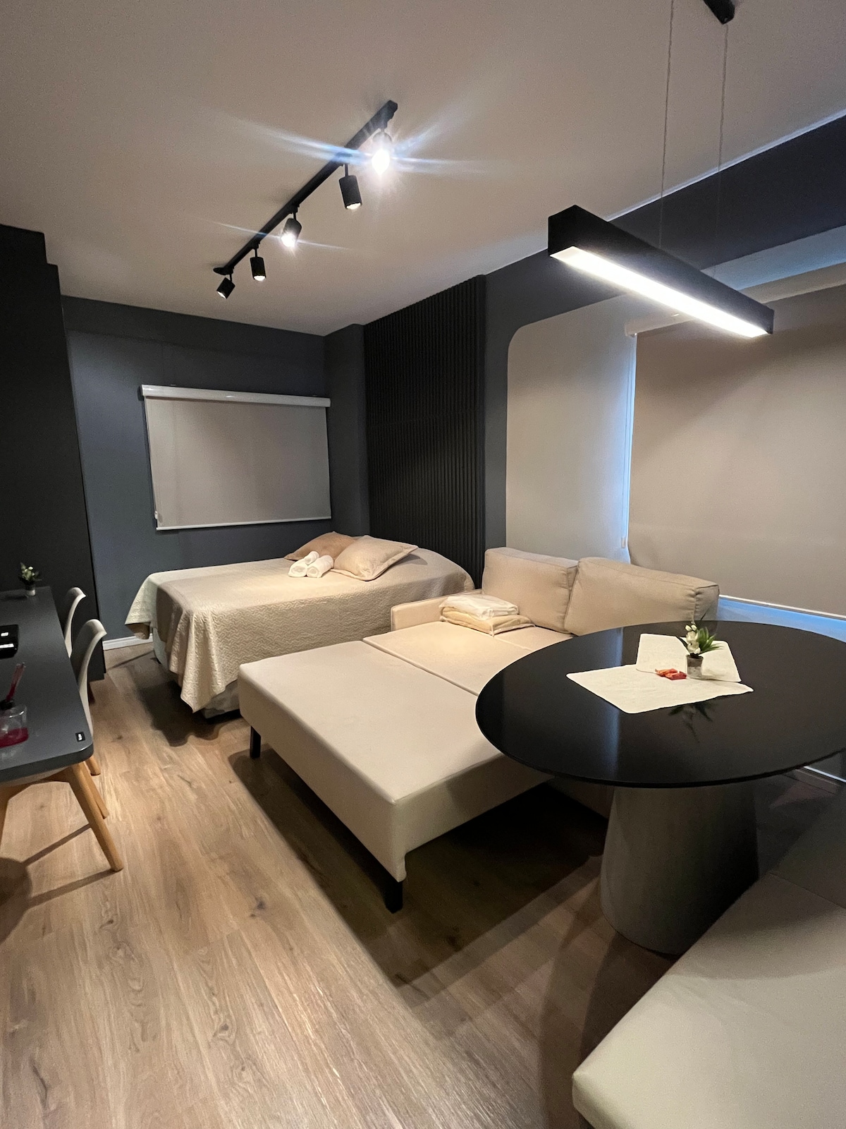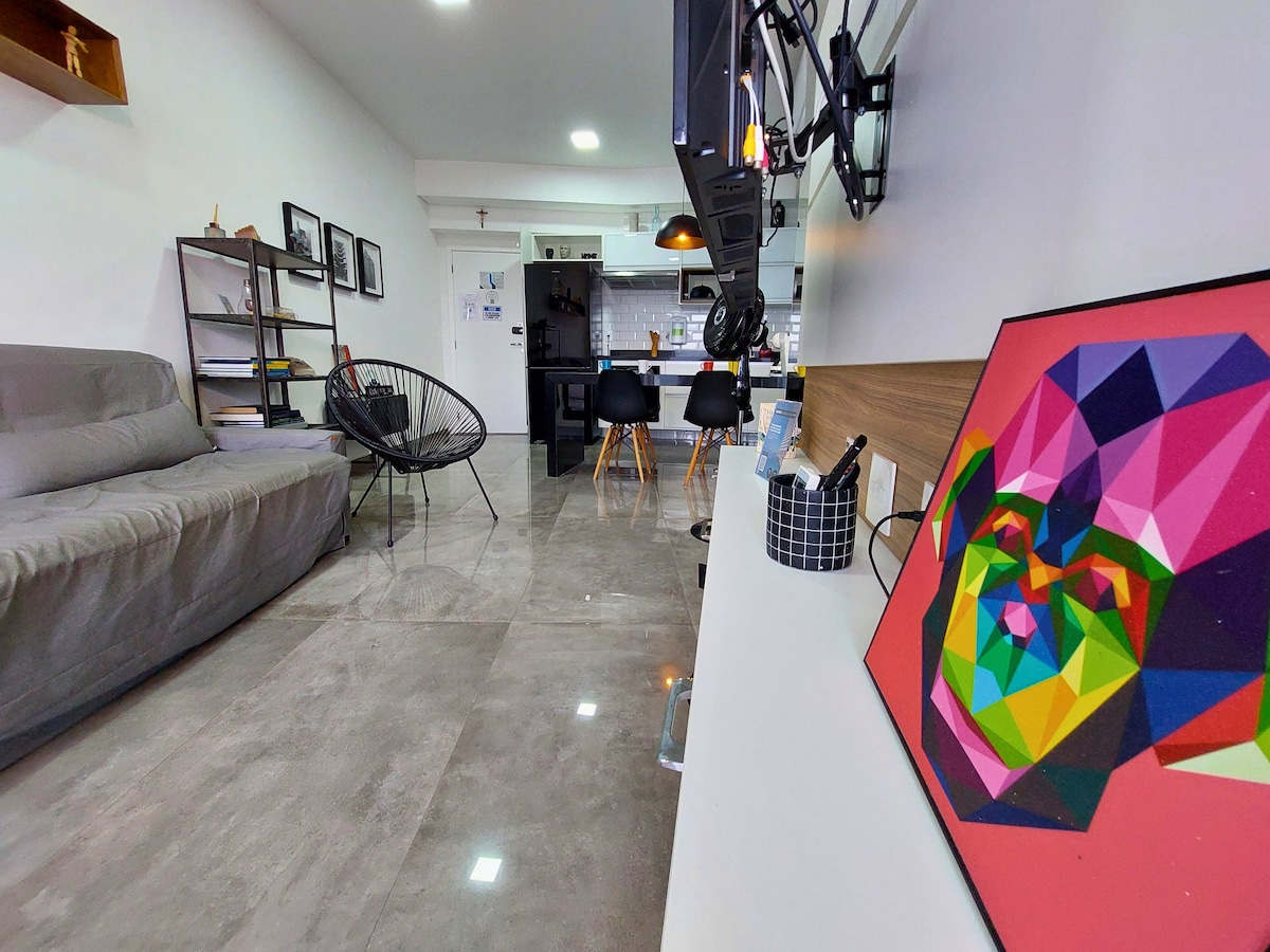 Relaxe neste espaço calmo e cheio de estilo. Mesmo se estiver chovendo você poderá aproveitar a vista infinita, o aconchego do sofá e todos os canais de streaming . O Prédio foi projetado por Artacho Jurado , e é um ícone da arquitetura . A vista do terraço é estonteante. O prédio é cercado facilidades como , padaria, farmácias. Late check out aos domingos. Relax in this calm and stylish space. Even if its raining , you'll able to enjoy the infinite view, cozy furniture and fast internet.