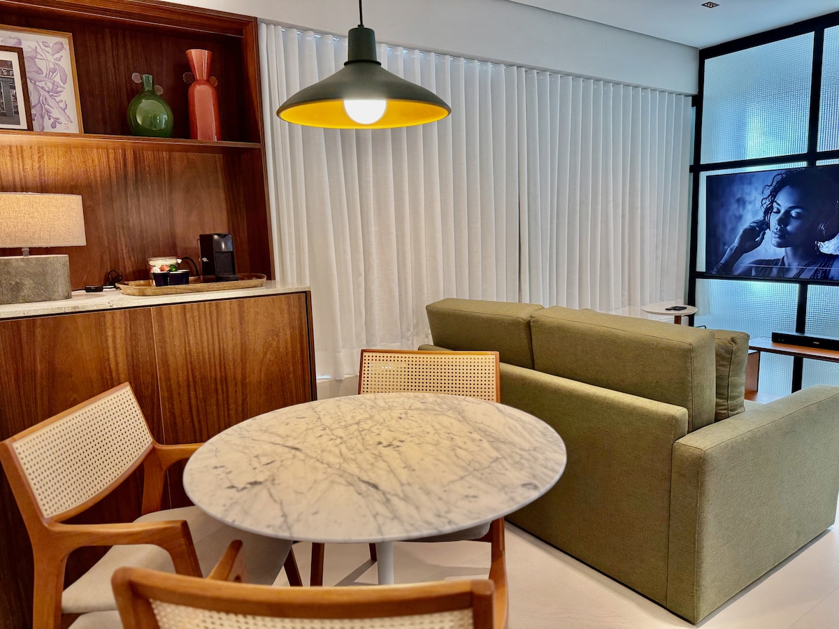 Our newly renovated apartment in the heart of trendy Jardins is sure to impress with its sleek modern design, comfortable amenities, and prime location. Located in a charming mid-century building, you’ll be just steps away from the best dining, shopping, and entertainment in São Paulo. Whether you’re looking to relax or be productive, this apartment has everything you need for a truly enjoyable stay, including a very comfortable workspace, and very quiet bedrooms.