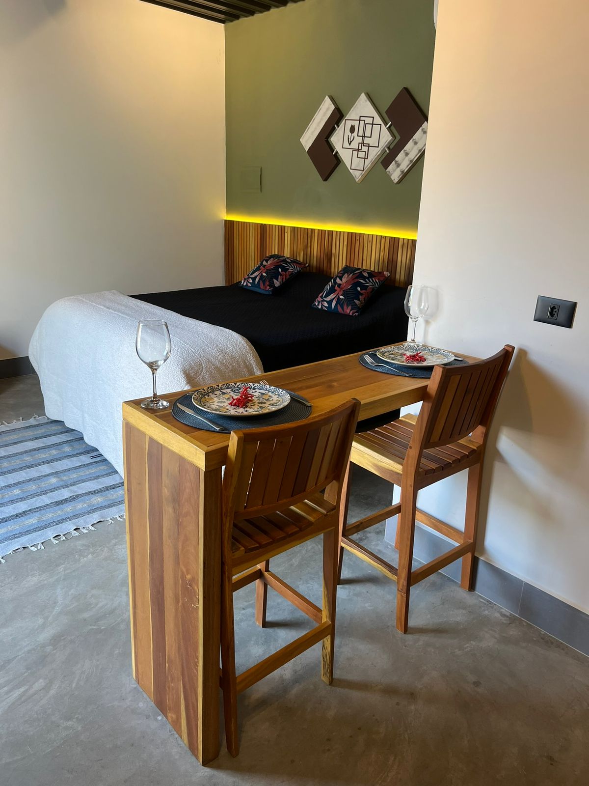 Nesse espaço celebramos a beleza da diversidade. Seu amor é bem vindo! A Suíte tem um estilo único de Cabana com quarto/saleta e banheiro. Na varanda que dá vista do alto da Chácara , temos mesa para refeições, uma Copa com pia, fogão cooktop, microondas e utensílios de cozinha. Aceitamos Pet de porte pequeno. (consulte manual do pet) A piscina é compartilhada com mais 5 Casas. Aqui a nossa proposta é oferecer uma pausa na correria do dia a dia da cidade.