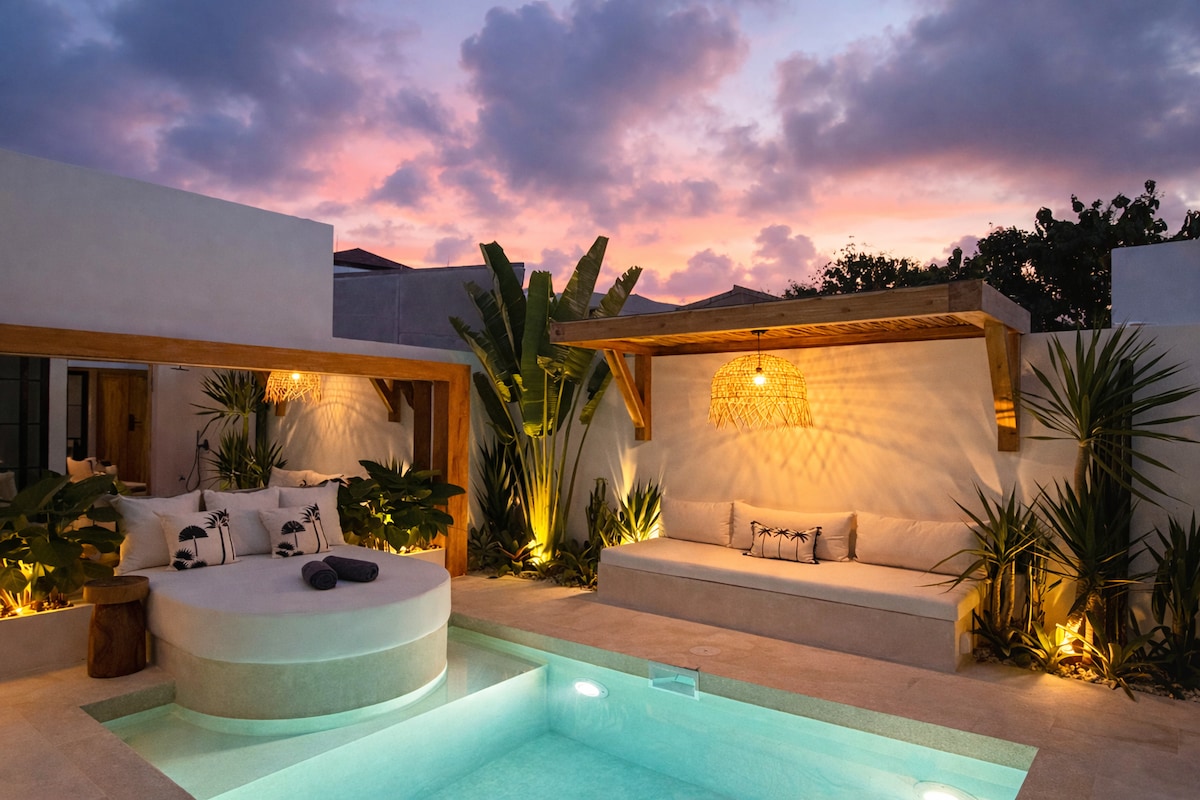 Nestled magically atop the cliff of Impossible Beach, with a stunning 180 degrees view of the Indian ocean. This property is artistically designed with a tropical tree house concept that blends in an earth-inspired soft tone that creates an inviting and peaceful environment while taking in the natural elements of the jungle and the ocean. This honeymoon suite with a charming plunge pool and a hammock net set up on the private balcony for you to enjoy every small moment with your loved ones.