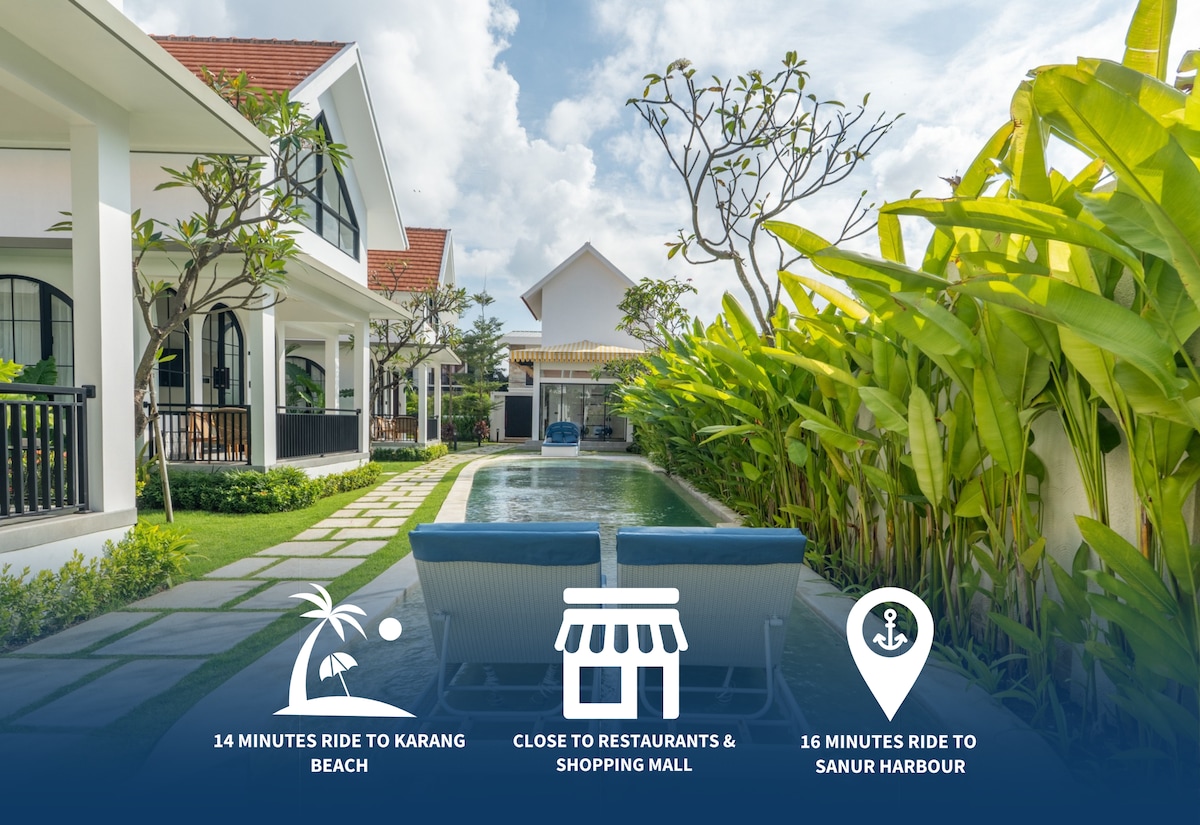 Embrace the vibrant energy of Sanur while enjoying modern comforts and easy access to local treasures. Start your day with a leisurely walk to Sanur Beach, where you can soak up the sun, try exciting water sports, or simply relax on the golden sand. Explore the nearby traditional market, bursting with colorful crafts and delicious local delicacies. With Sanur Port just a short distance away, island adventures are within easy reach.