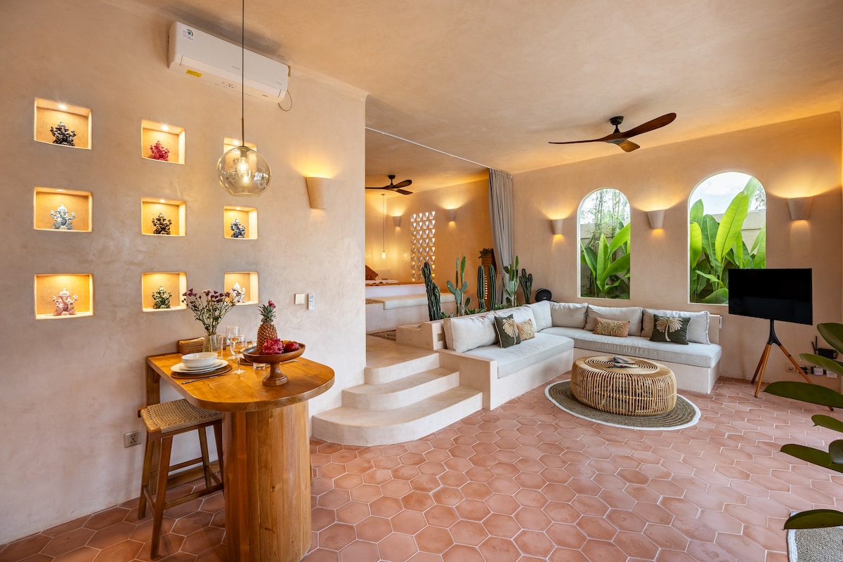 距离海滩450米,1卧室私人泳池别墅(C)