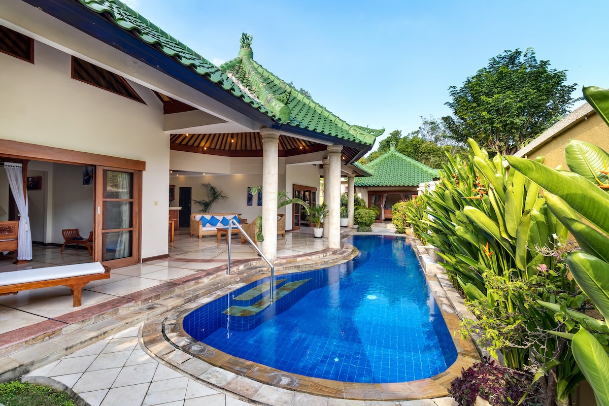 Luxury villa . Described by our guests as exceptional . In a quiet location. With 24 hr security. walking distance to shops ,beach and restaurants , house keeper daily Has a license to operate as a short term rental in a secure location, fully equipped kitcken, own private pool .Can be rented as 1, 2 or 3bedroom With free WIFI lic no 3000 9298 03 03 for short stay rental. Kadek is at the villa daily and .does all the your house keeping and attend to all your daily needs shopping etc