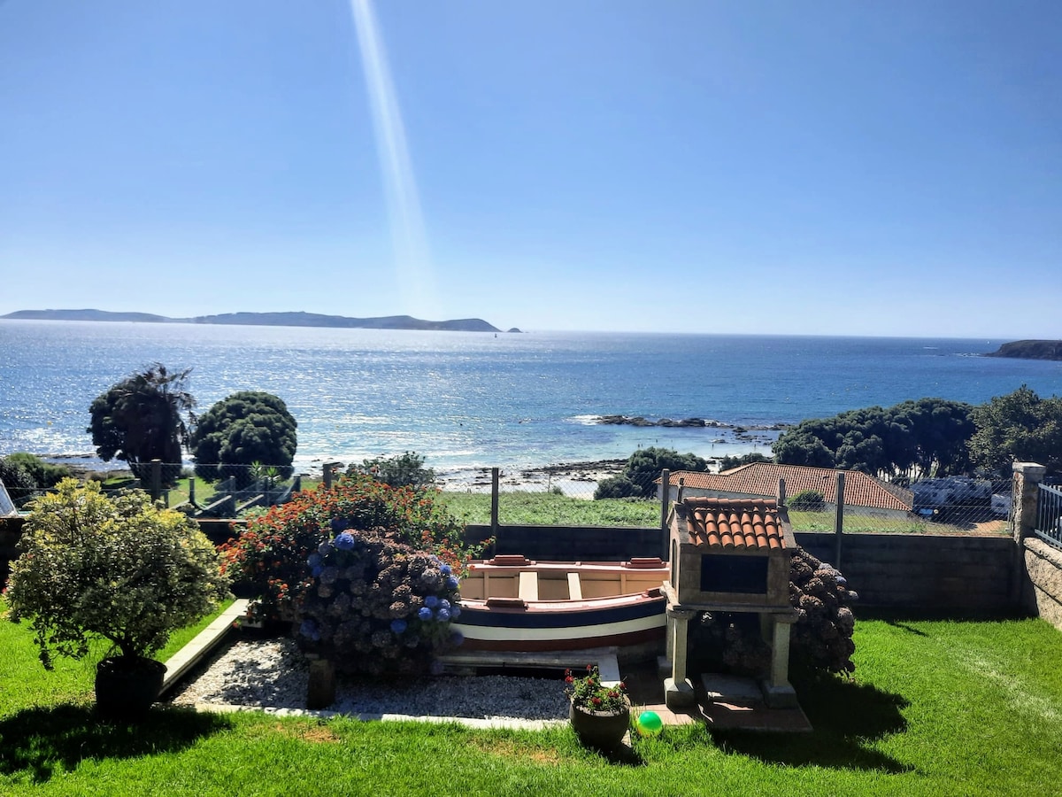 Te imaginas desayunando frente al mar? Relajarte con el océano a tus pies? Bajar a la playa en cualquier momento o disfrutar de las vistas desde el porche acristalado o el jardín? Pocos lugares tienen las increíbles vistas y puestas de sol de este lugar, a tan solo 100m de la playa bandera azul Pragueira/Major. Hasta puedes ver delfines. Dispone de cocina, barbacoa y comedor acristalado exterior para disfrutar todo el año de este privilegio. Excelente ubicación para conocer las Rias Baixas.