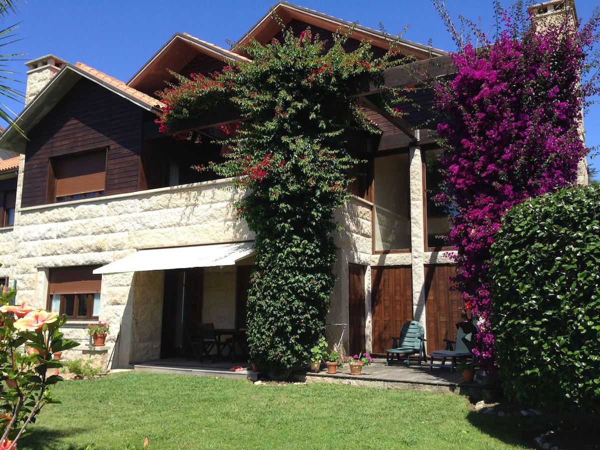 Se alquila casa completa por un mínimo de 2 noches y un máximo de 29 con capacidad para 8 personas, 4 habitaciones, sofá cama en salón, 2 baños, cocina equipada, porche cubierto, barbacoa con pergola, garaje y jardín. Playa (1km) Area recreativa (600m) Pontevedra (2,5km) Sanxenxo (15km) Santiago de Compostela(58 km) Oporto 143 kms. Vigo 30 kms autopista Combarro 4 km