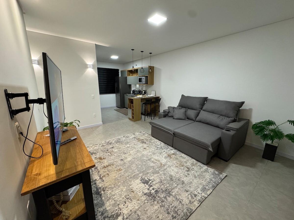 Beautiful apartment on the second floor in a family condominium, super comfortable and cozy, perfect for a couple. With a spacious bedroom and queen size bed, modern bathroom, kitchen and living room in open concept. It is located in the central region of the city, less than 5 minutes walking distance from bars, restaurants, pharmacies and supermarkets. Perfect for those seeking practicality, security allied with a spacious and modern space to rest.