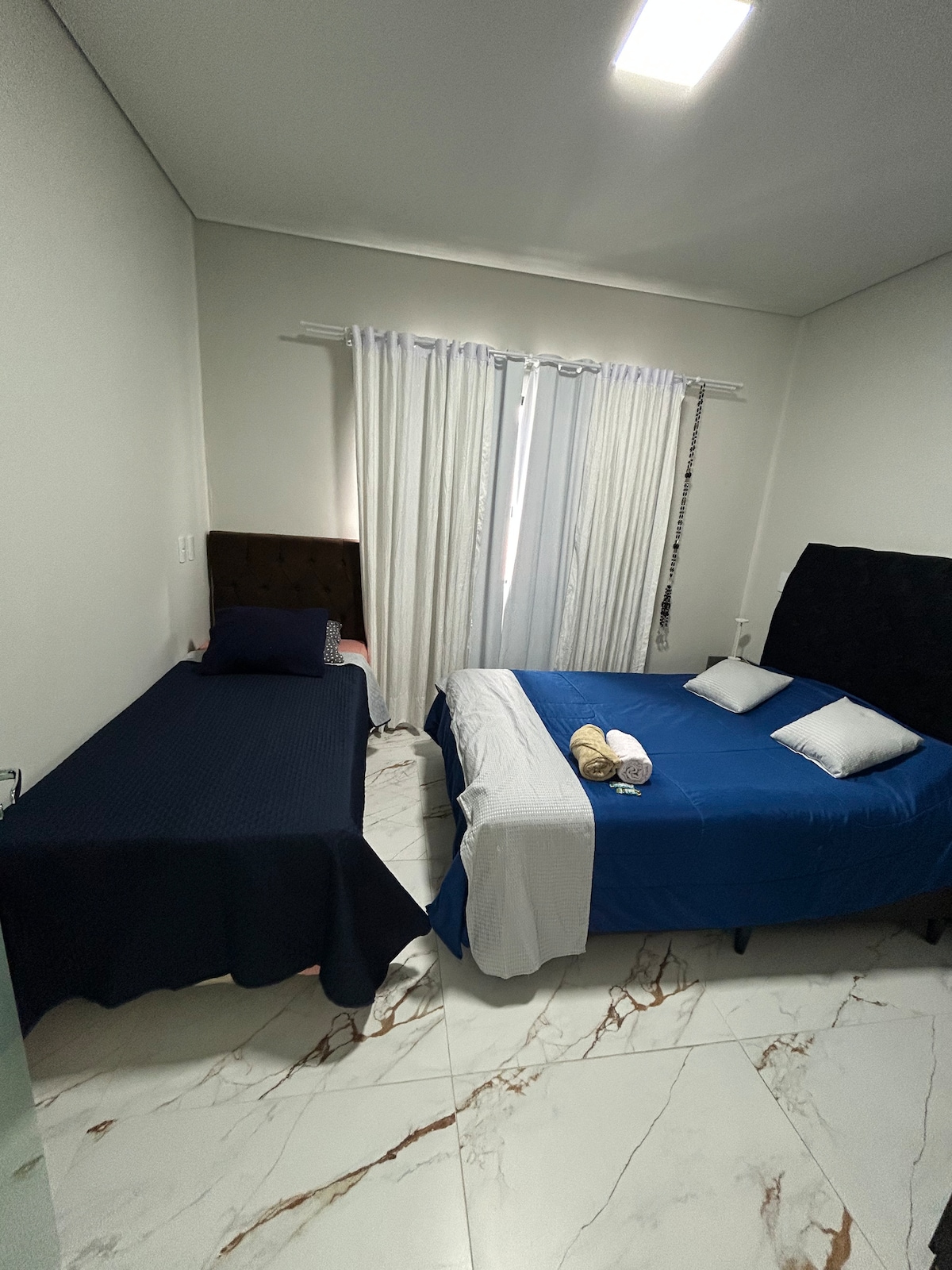Hospede-se no Top 5%! Casa confortável com 2 Quartos Climatizados e Acesso Privativo. Perfeita para famílias ou trabalho, oferece: Cozinha Completa + Purificador de Água. Área externa com Churrasqueira. Sala com TV 50" e Garagem para 2 Carros. Acomodações: Cama Casal, 2 camas de Solteiro ( +1 colchão de solteiro + Berço). Possui 1 banheiro + 1 lavabo. Diferenciais: Oferecemos roupas de cama, toalhas e mimos de cortesia para uma estadia impecável. (A casa possui escadas.)