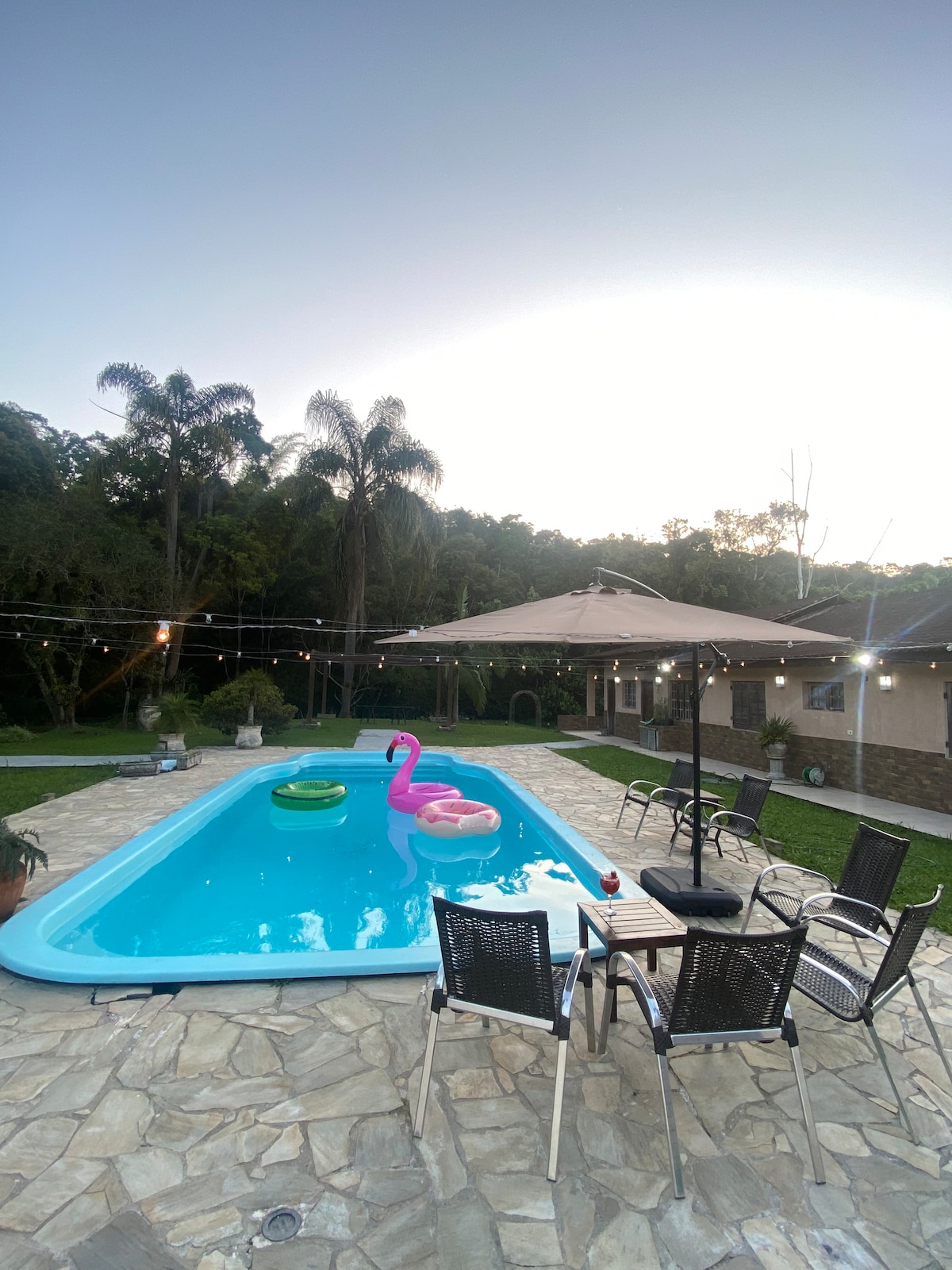 Chácara com lazer completo: piscinas adulto e infantil, campo de futebol, sala de jogos, edícula com churrasqueira, forno de pizza e fogão a lenha, espaço para fogueira, sala com lareira, deck na árvore, playground, pergolado, lareira externa com banco, redário, 3 dormitórios, sala de TV e cozinha integrada. Estacionamento interno e muros em todo o terreno. Não aceitamos eventos com convidados externos, apenas pequenos eventos entre os próprios hóspedes.