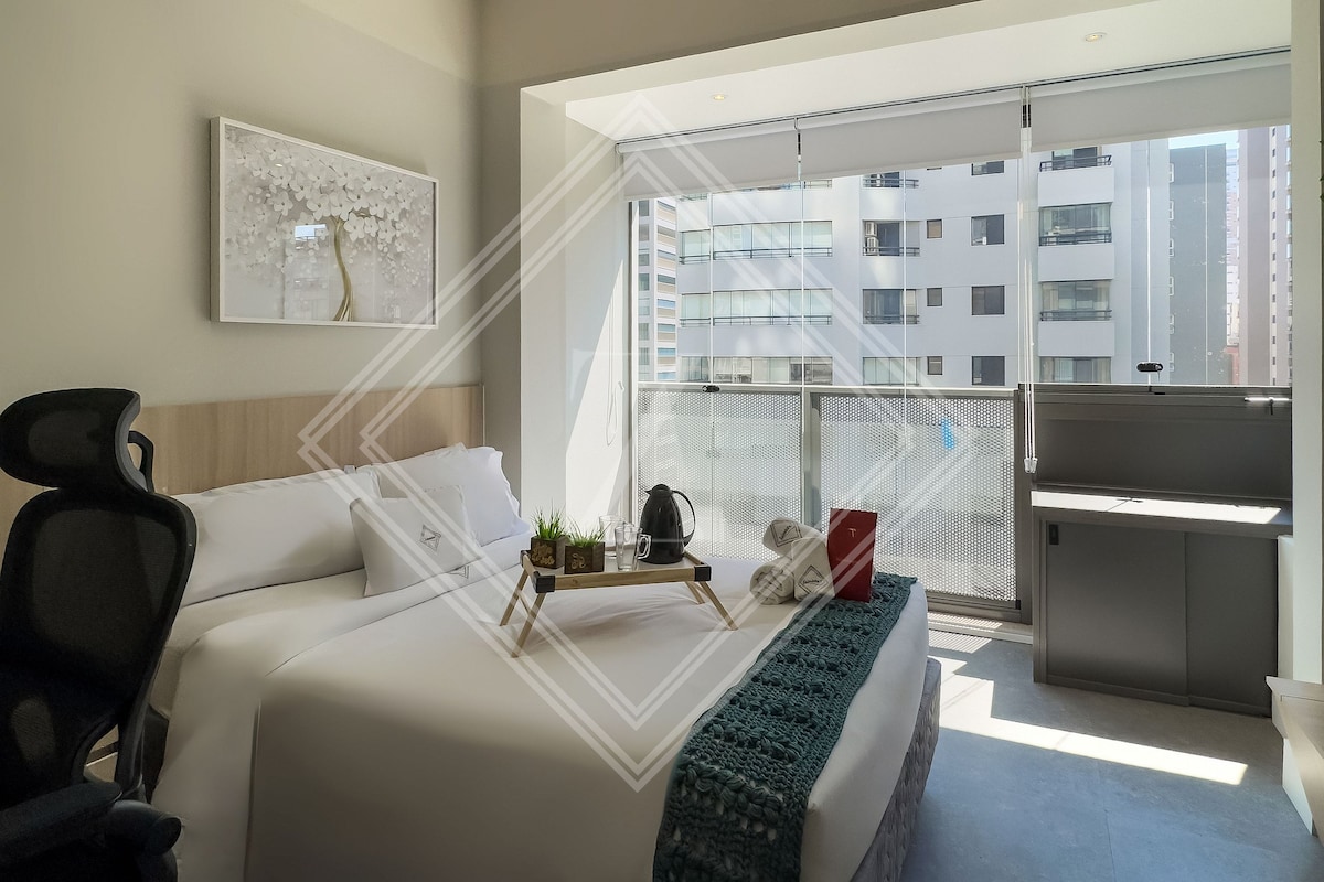Novo studio em novo condomínio conceito a 180m do metrô para duas pessoas! Conectividade e tecnologia > wi-fi de alta velocidade > smart TV com acesso a internet > fechadura eletrônica Conforto > cama queen > cozinha completa > ar condicionado > linda vista Condomínio completo > portaria 24h > piscina > coworking > academia > lavanderia Pay per Use Localização privilegiada > Rua Madre Cabrini, 99 > 180m do Metrô (aprox 3 minutos a pé) > 2o andar Sem vaga de garagem
