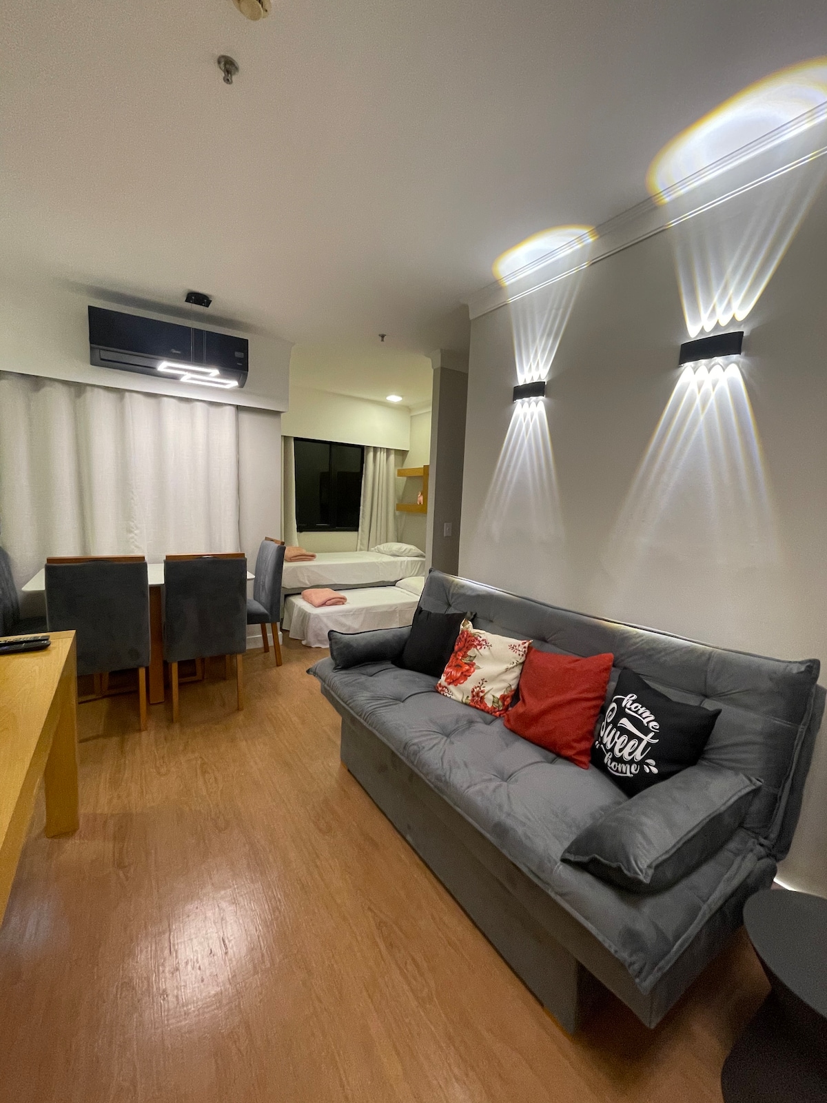 Apartamento muito amplo e com serviço de flat (uma hora e meia de camareira por dia, exceto domingos e feriados). Um quarto com cama de casal e outro com duas camas de solteiro (que podem ser colocadas lado a lado caso queiram). O apto é recém reformado e está totalmente equipado! Ficarei feliz em ajudar no que for preciso para que a sua estadia supere as expectativas, tanto no suporte/dúvidas no apartamento, quando dicas para curtir São Paulo. Aguardo vocês!