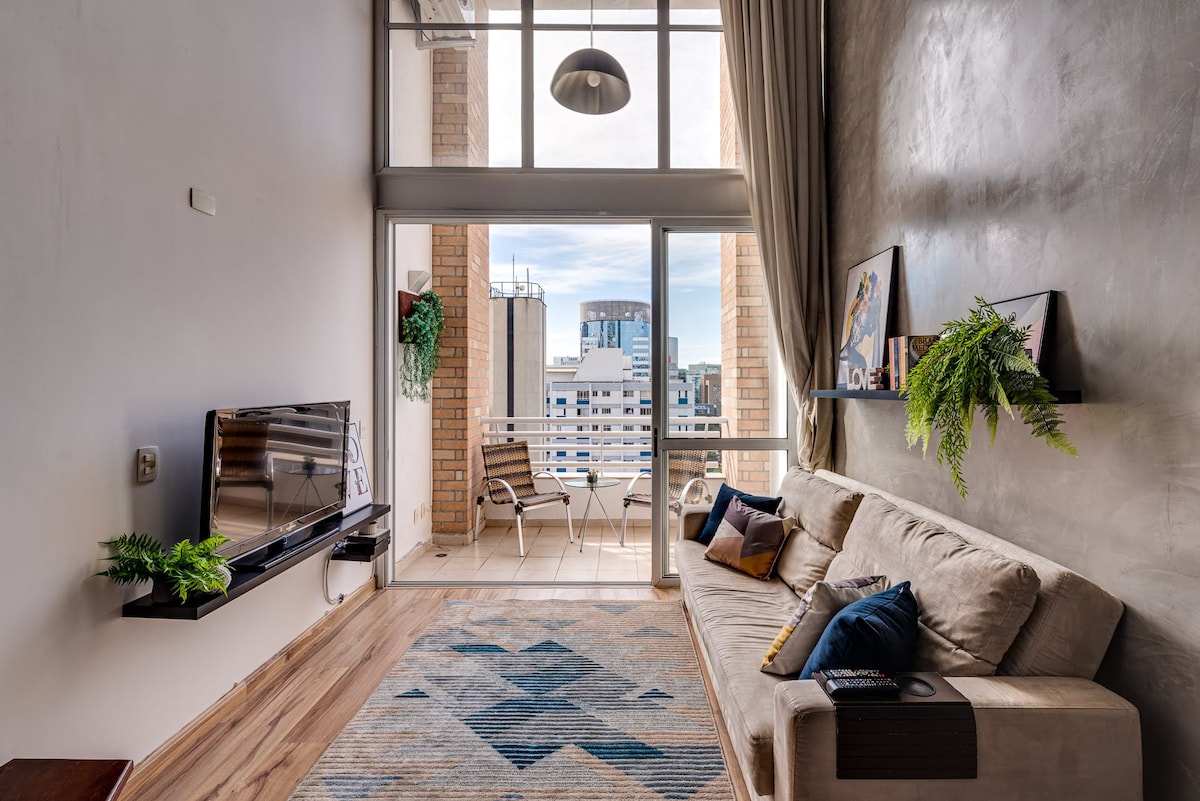 O studio fica no 31º andar do edifício mais alto do centro, com um design moderno e acolhedor, além de uma vista impressionante da cidade. Da janela, é possível admirar o Vale do Anhangabaú, Centro Histórico, as antenas da Av. Paulista: uma das paisagens mais belas de SP. É o prédio onde fica o SampaSky e é possível caminhar para as principais atrações do centro. Conta com ar condicionado, TV de 55'' com apps, cozinha equipada com utensílios básicos, cooktop (1 boca), microondas e frigobar.