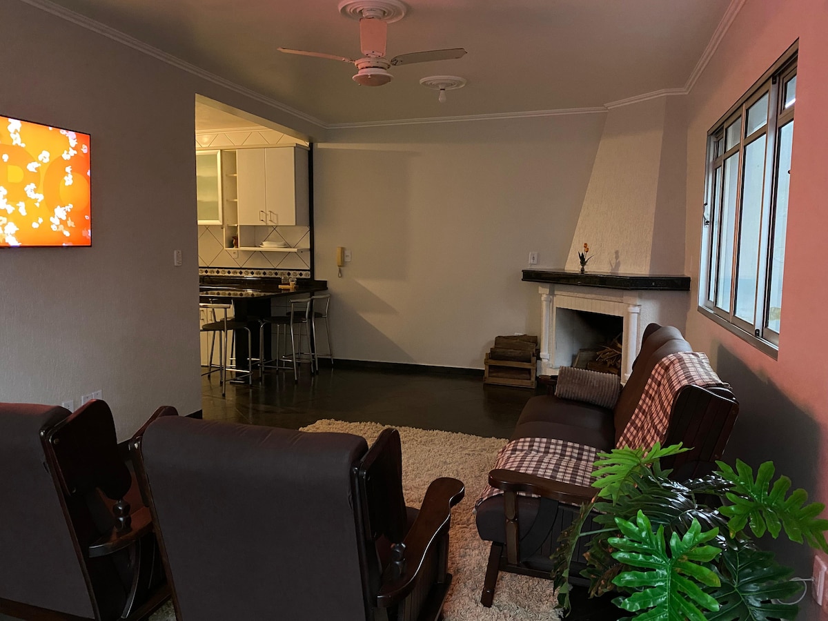 Possui cozinha completa e churrasqueira com os respectivos acessórios.