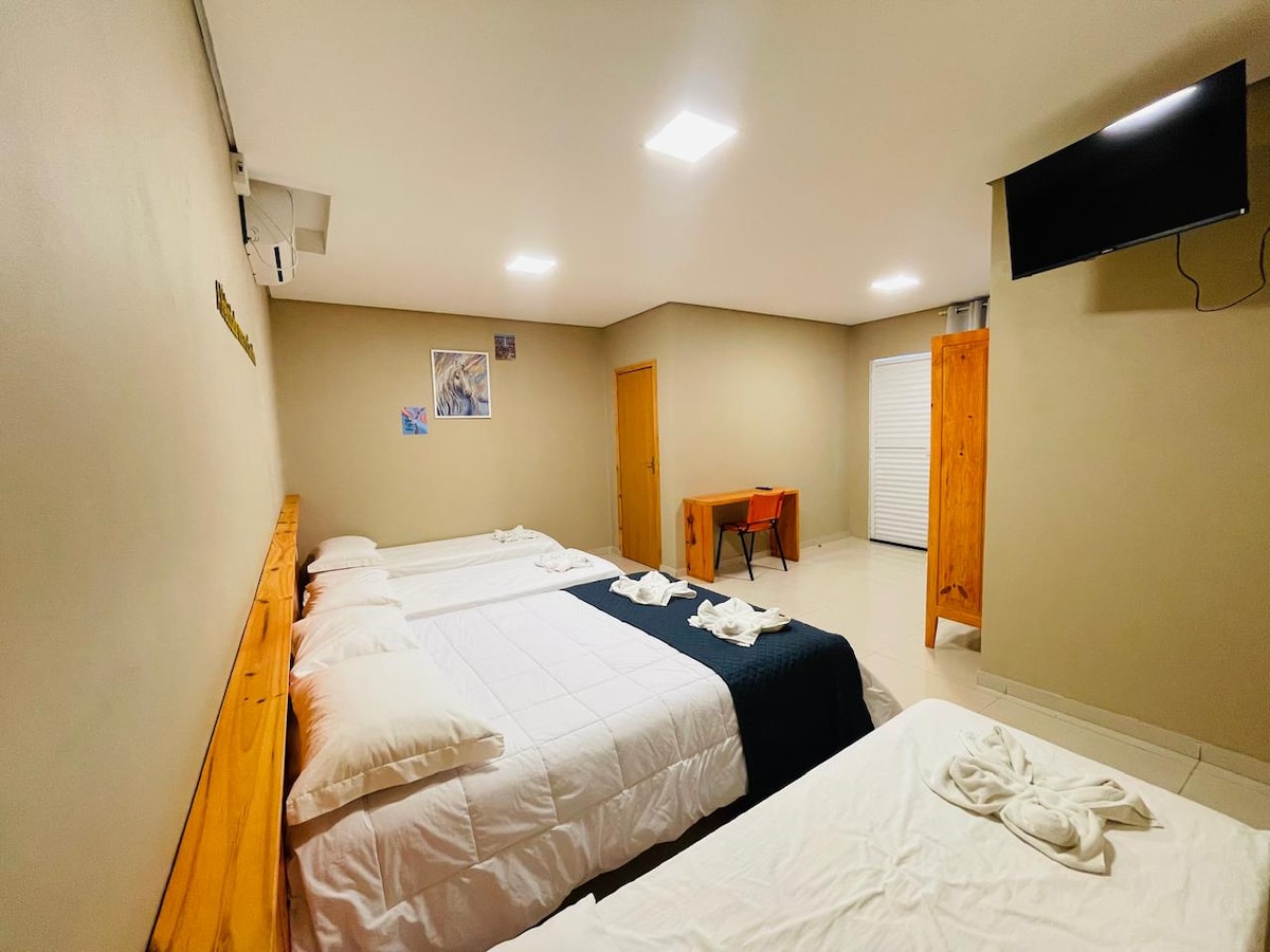 Quartos completos com travesseiros e roupas de cama e banho para 4 pessoas.