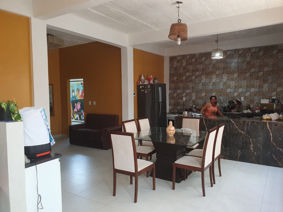 Casa aconchegante, toda equipada, localizada em estiloso condomínio na beira do rio com TRAPICHE, piscina, churrasqueira e campinho de futebol! Possui ar condicionado nos quartos, chuveiro quente nos 3 banheiros, liquidificador, microondas, geladeira, cooktop, pratos, panelas, copos e talheres.