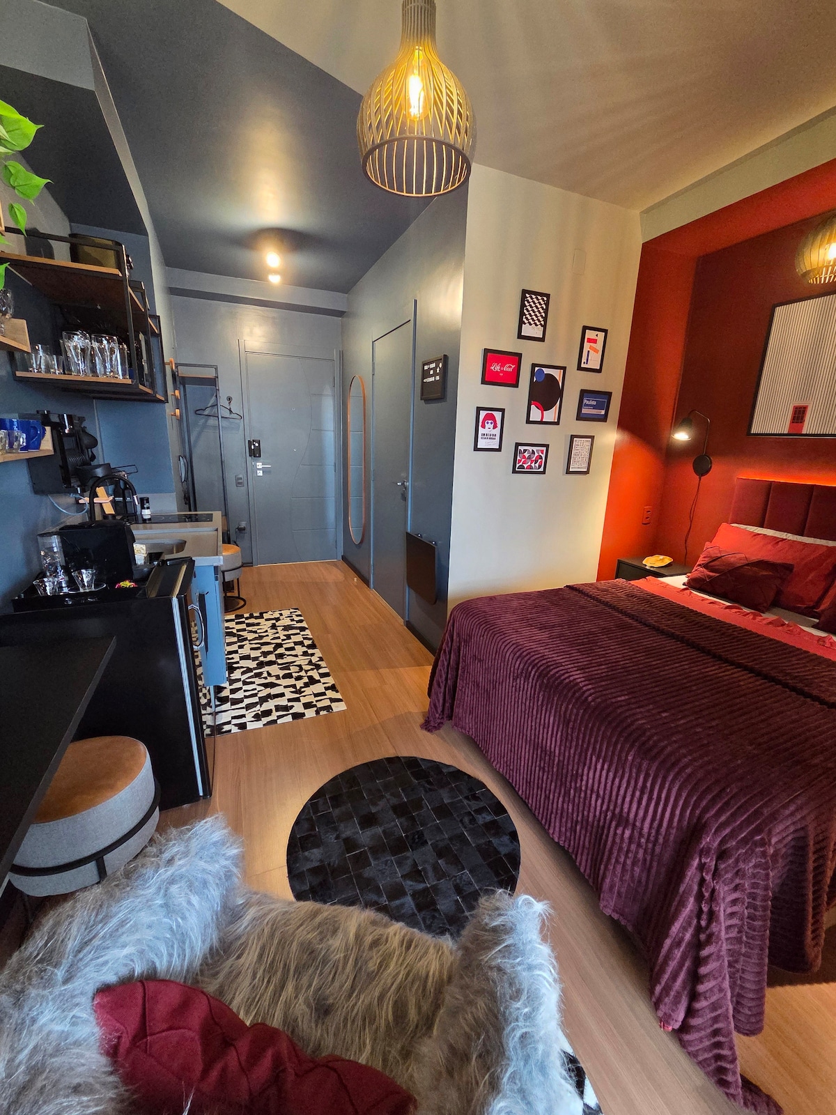 Aconchegante Apart-Hotel com vista para o pôr do sol. Decoração charmosa, estrutura completa e localização privilegiada! Conta com ar-condicionado, cafeteira, airfryer, cama queen, 2 Smart tvs, canal a cabo, cozinha, sala . Ambiente luzes 3 fases . Há uma lavanderia self-service, restaurante hotel , piscina, sauna e 1 vaga garagem Próximo à ciclovia, parque, restaurantes, drogaria, mercado, Kopenhagen , 4km Shopping São Caetano. Ideal para relaxar ou trabalhar com conforto e segurança.