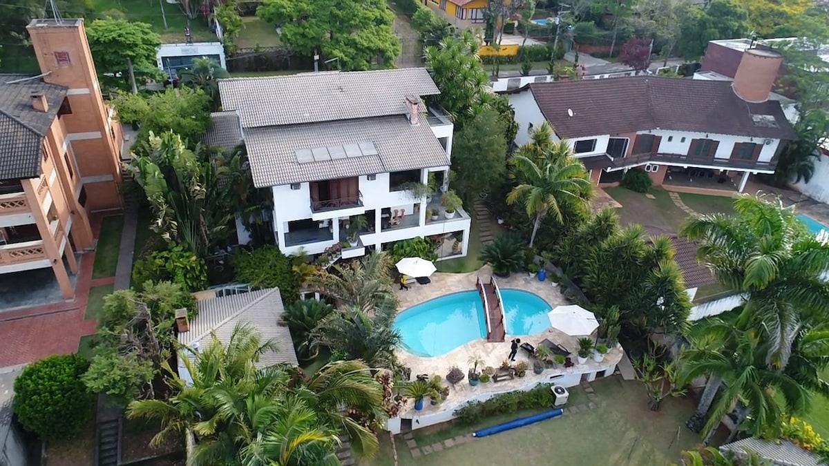 A casa é uma delícia! Ampla e acessível. Sala com lareira, cozinha e churrasqueira integradas a uma varanda enorme. A vista? Só se vê o verde... Tucanos e esquilos serão seus vizinhos. Segura e divertida para crianças de todas as idades e com piscina! Ideal para fim de semana/feriados, comemorações familiares, para trabalhar ou passar temporadas maiores, até mesmo para recuperar a saúde. Estamos dentro de um bolsão residencial calmo e, ao mesmo tempo, perto de restaurantes, shopping, mercados.