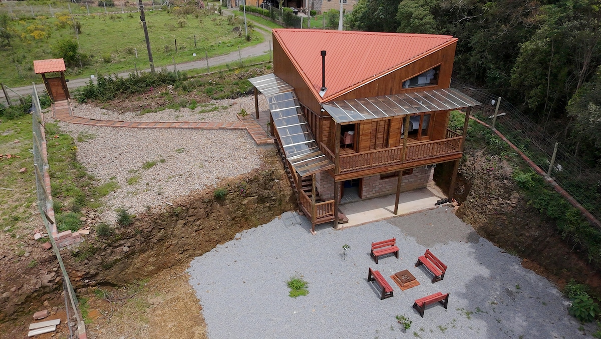 Estamos à 4,3 Km (7min) do centro da cidade. Localizada no sitio junto a nossa casa na Linha Ávila Alta 2090, percurso todo asfaltado. A casa é construída artesanalmente, com teto verde e amplo jardin. Acomoda 4 pessoas, 2 adultos e 2 crianças,1 quarto (cama de casal e sofá cama), 1 banheiro, cozinha equipada com frigobar, fogão, microondas, cafeteira elétrica, grill e utensilhos. Roupas de cama e banho também são disponibilizadas, além de conectividade WI-FI.
