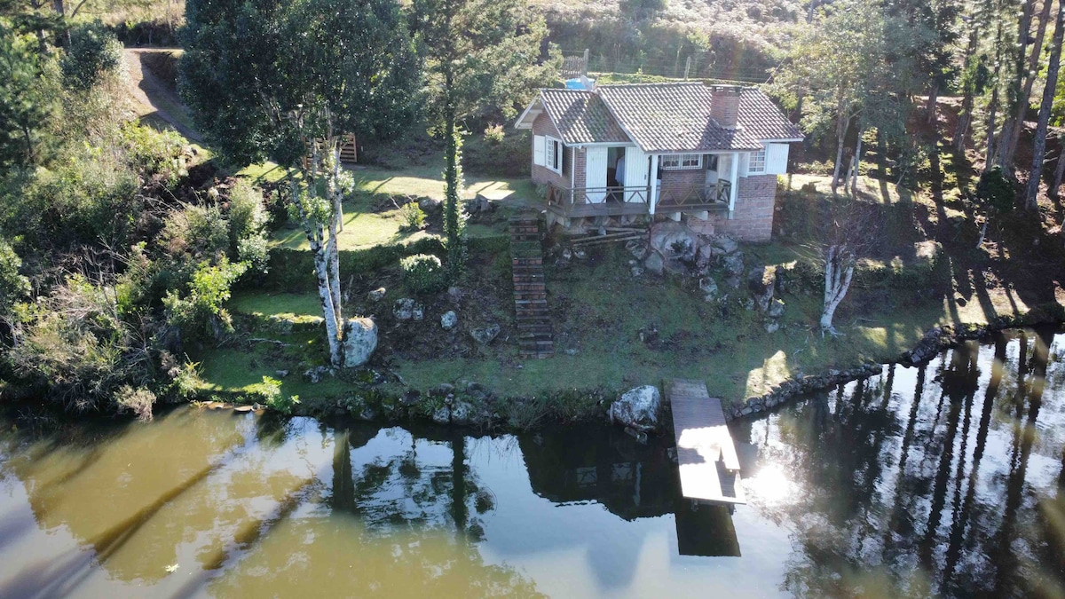 Casa com 3 suítes + 1 quarto, lareira, churrasqueira, TV e cozinha completa com utensílios. Pé direito alto. Está localizada em meio a natureza, com vista para o lago e com toda tranquilidade que precisa para relaxar. Fica a 6km do centro de Canela e 15km do centro de Gramado. Tem AR CONDICIONADO (quente e frio) NAS 3 SUÍTES E NO QUARTO. Tem um bistrô no local para almoço, janta e/ou café da manhã com reserva (NÃO inclusos na diária). Solicitar a parte. Pesca esportiva cobrada à parte.
