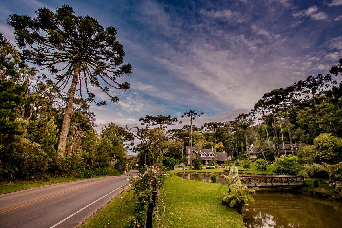 Em meio à deslumbrante paisagem do interior de Gramado, encontra-se nossa propriedade. Imagine-se desfrutando de momentos de paz e tranquilidade, cercado pela natureza exuberante. Com uma localização privilegiada, oferecemos o equilíbrio perfeito entre serenidade e conveniência. Reserve agora e permita-se viver essa experiência. São 14km de distância do centro da cidade até o Chalé, leva em média 25 minutos de carro. Para maior comodidade sugerimos veículo particular durante a estadia.