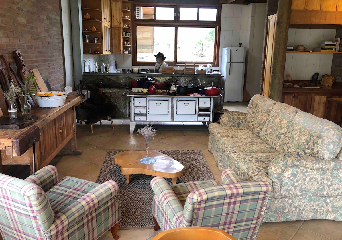 O luxo da nossa hospedagem está na simplicidade e aconchego de cada detalhe." Venha desfrutar momentos e experiências, criando memórias afetivas! Nosso refúgio está em meio à natureza, cercado por belíssimas araucárias e mata nativa preservada, o que torna a paisagem única e encantadora. Por ser um ambiente natural, é possível, ocasionalmente, ocorrer a presença de insetos e outros elementos da fauna e flora local — algo que faz parte da experiência única de estar em contato com a natureza