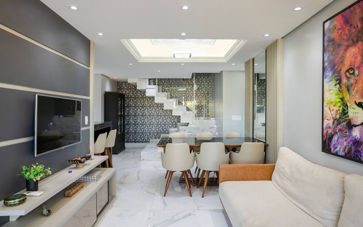 Viva momentos únicos na Serra Gaúcha! Hospede-se em um flat completo com a estrutura de um hotel e o conforto de casa. Lareira, piscina aquecida, sauna, brinquedoteca, academia e muito mais. Nosso flat está em local tranquilo, apenas 700 metros da Catedral de Pedra (cartão postal/centro de Canela). Fica em uma rua residencial arborizada, com fácil acesso a cafés, restaurantes e lojas. Ao lado área verde, contato com a natureza. Serviço de café da manhã (custo à parte) entregue no apto.