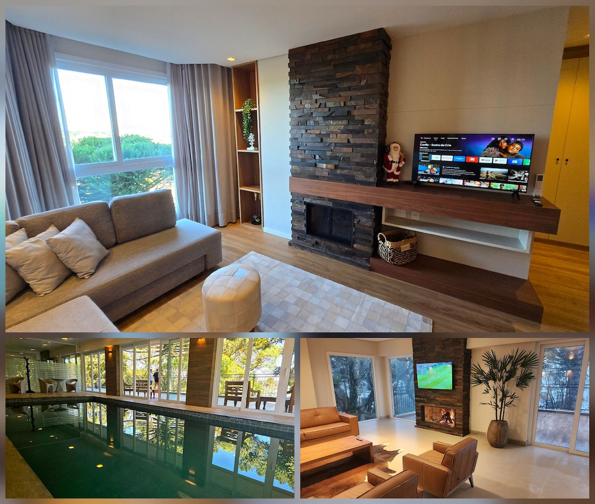 Viva momentos inesquecíveis na Serra Gaúcha! Hospede-se em um flat completo, moderno e acolhedor, com a estrutura de um hotel e o conforto de casa. Aproveite lareira, piscina aquecida, sauna, brinquedoteca, academia e muito mais. Estamos a poucos minutos da Catedral de Pedra e das principais atrações de Canela e Gramado, com fácil acesso à natureza, gastronomia, compras e cultura da região. Oferecemos serviço de café da manhã (custo à parte) entregue no apartamento. Perfeito para relaxar!
