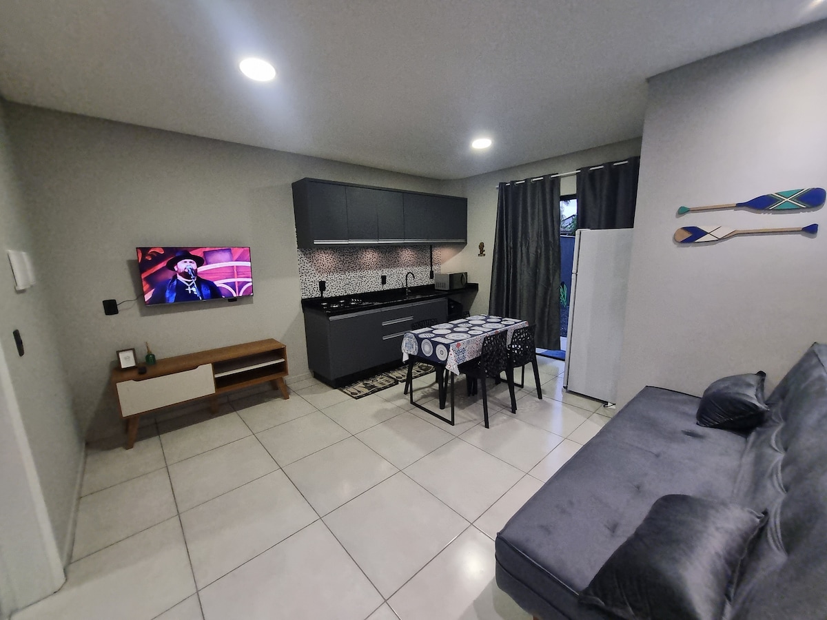 Apartamento estilo boho, intimista e aconchegante. Perfeito para casais e família. A meia quadra de uma das praias mais procuradas de SFSUL, a Prainha. A 10 min da enseada, praia grande e praia do molhe. Tudo sem precisar de carro que pode ficar estacionado na frente do prédio em rua calma e tranquila (não temos garagem). Excelente para aproveitar e descansar! Apartamento recém reformado, completo. Fornecemos roupa de cama e toalhas durante a estadia, padrão hotelaria. Pet friendly!
