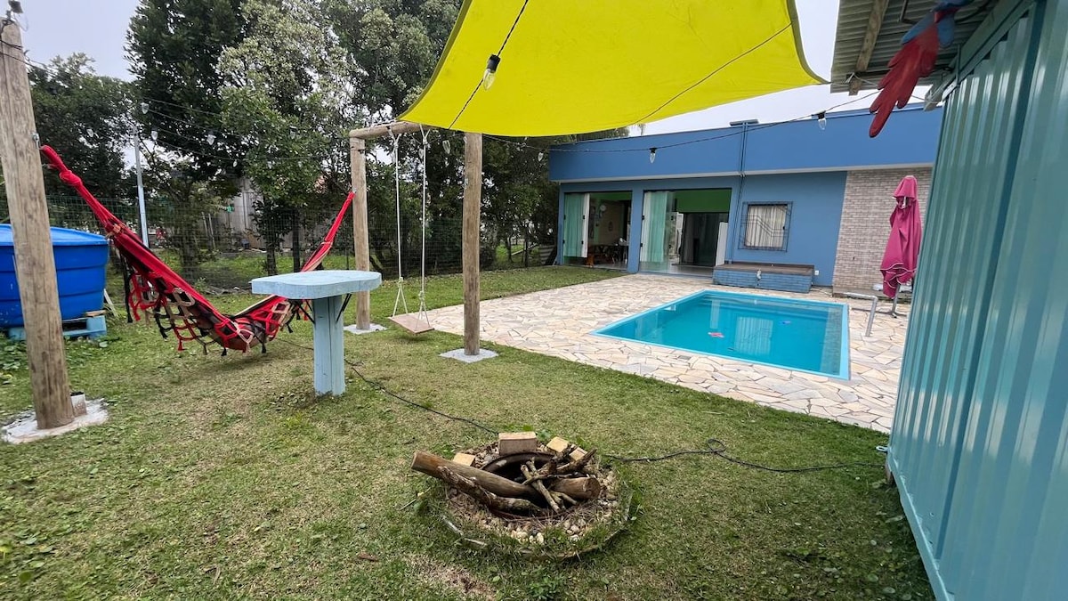 Desejam um rio, uma praia, passear em bicicleta, andar em bote, pescar, fazer uma comida campeira, um churrasco e curtir uma fogueira a noite e ainda conectados ao mundo?... Tudo isso vocês encontram na nossa casa que esta em um Paraíso rodeada pela fauna e flora da Mata Atlântica ao lado do rio e a 150m do mar....