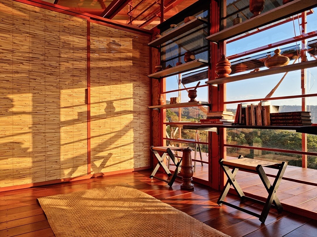 Ambiente sustentável totalmente integrado com a natureza e dedicado para o bem estar, conforto e experiências. Nosso bangalô é feito de materiais naturais, madeira e pedra. O seu clima aconchegante em meio às árvores, faz um convite para uma conexão muito próxima com a natureza. Cada detalhe é feito artesanalmente e pensado exatamente para o espaço aberto pela natureza, sem tirar nenhuma árvore. A ideia é que a natureza nos abrace e que estejamos em harmonia com o ambiente a nossa volta.