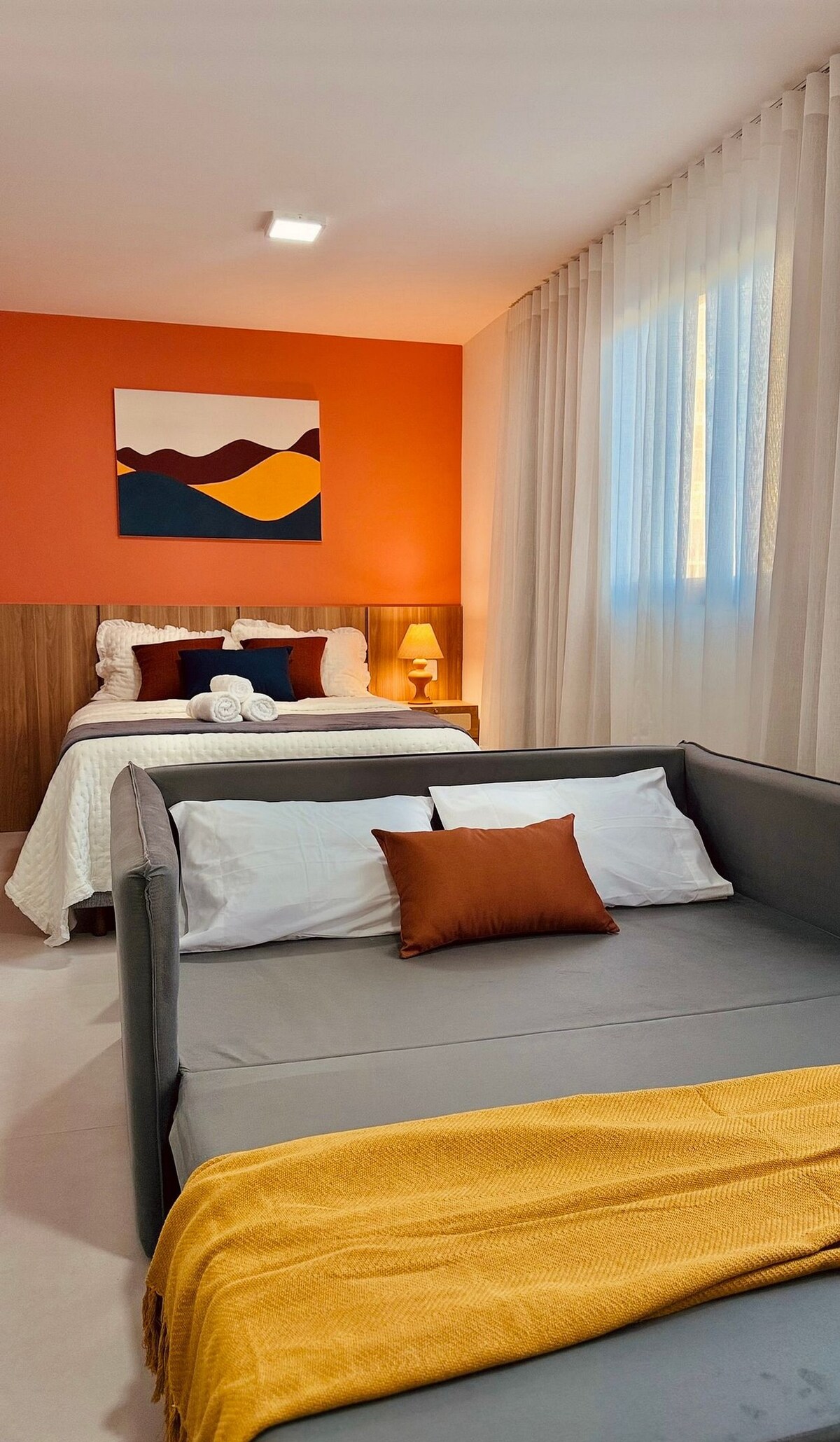 EasyFlat - Diamantina MG l | Nathom Temporadas Flat moderno e integrado e compacto localizado no Jardim Imperial, ideal para casais que buscam conforto, privacidade e praticidade (podendo instalar mais dois hóspedes em sofá-cama) | Decoração com inspiração moderna e algumas referências artísticas, ambientes planejados e uma atmosfera acolhedora e elegante.