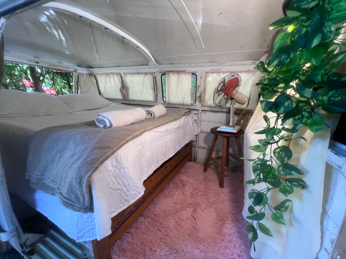 Experiência única de hospedagem em um ônibus, pé na areia das mais belas praias do Brasil. Localizado na exclusiva praia dos Arandis, 5 minutos a pé pela praia até os bares e restaurantes de Algodões. O ônibus recém reformado está situado no Sítio Pura Vida, são 5.000 m² de natureza, uma das poucas propriedades que ainda conta com uma área de floresta nativa, com fauna e flora exuberante.