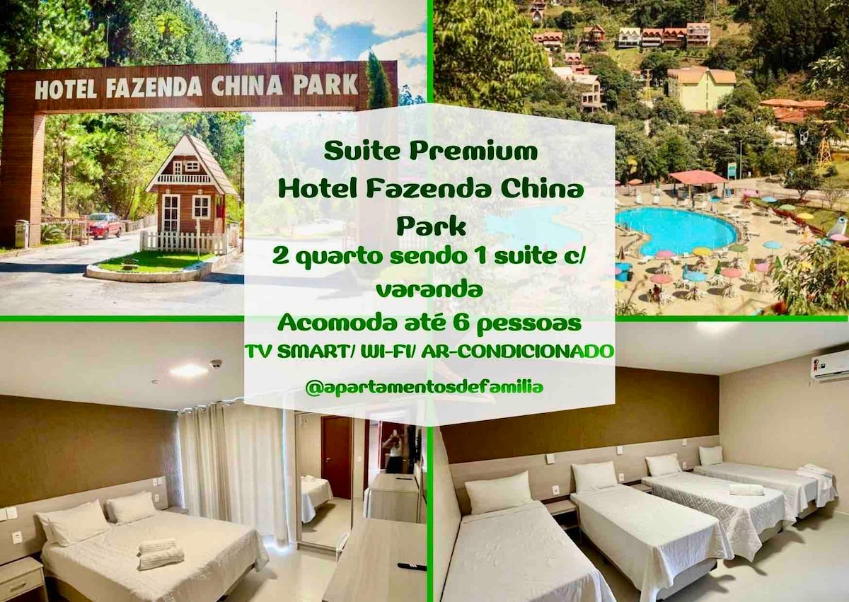 Insta 👉🏼@gscjunior83 Lazer completo incluído (sem custos). Hospedagem em Suíte Premium para 6 pessoas com duas TVs, microondas, frigobar e ar condicionado quente/frio. Direito à usar de todo o lazer China Park (Centro Termal com piscinas e ofurôs aquecidos, sauna, parque aquático, teleférico, trenzinho, pesque e solte, pedalinho, sala de jogos, campo society, academia, cinema e recreação). PROIBIDO COZINHAR NA SUÍTE. Não possui cozinha, mas hotel tem lanchonetes e restaurante.