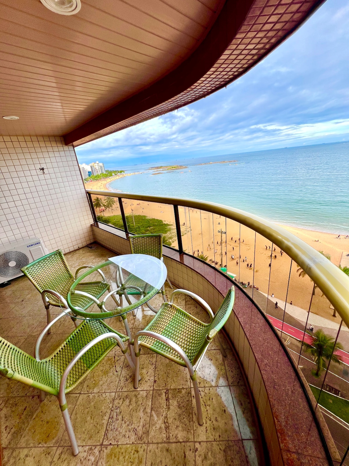 Descubra o encanto de Vila Velha em nosso mais novo e exclusivo flat, situado na deslumbrante Praia da Costa. A varanda fica totalmente de frente para a praia e oferece uma vista panorâmica de 180 graus do oceano, ideal para desfrutar o nascer do sol , um espetáculo Elegantemente decorado, com um quarto de casal e uma sala acolhedora equipada com sofá-cama para dois. Projetado para oferecer uma experiência de hospedagem única, nosso flat combina uma vista espetacular com conforto e conveniência