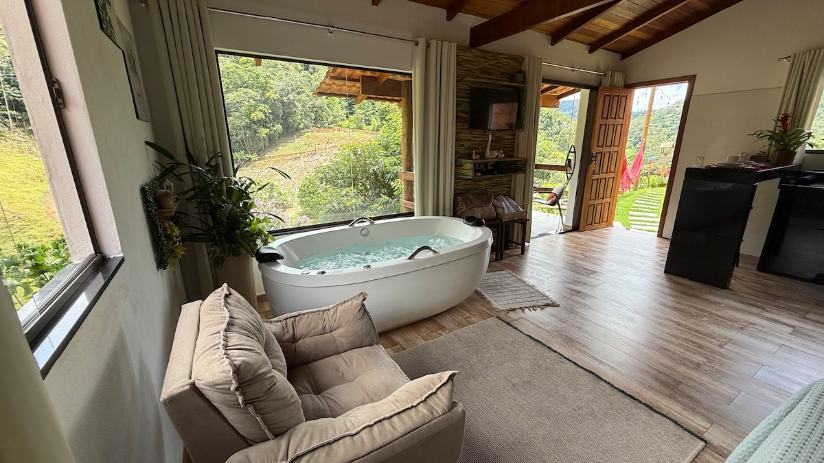 o bangalô Canto da Cachoeira fica no meio da mata Atlântica e é possível ouvir o dia todo o som da cachoeira, um ótimo local para descansar e praticar medição. A cachoeira fica dentro do terreno onde está o bangalô, apenas 2 minutos da acomodação. Você terá acesso exclusivo a cascata (: