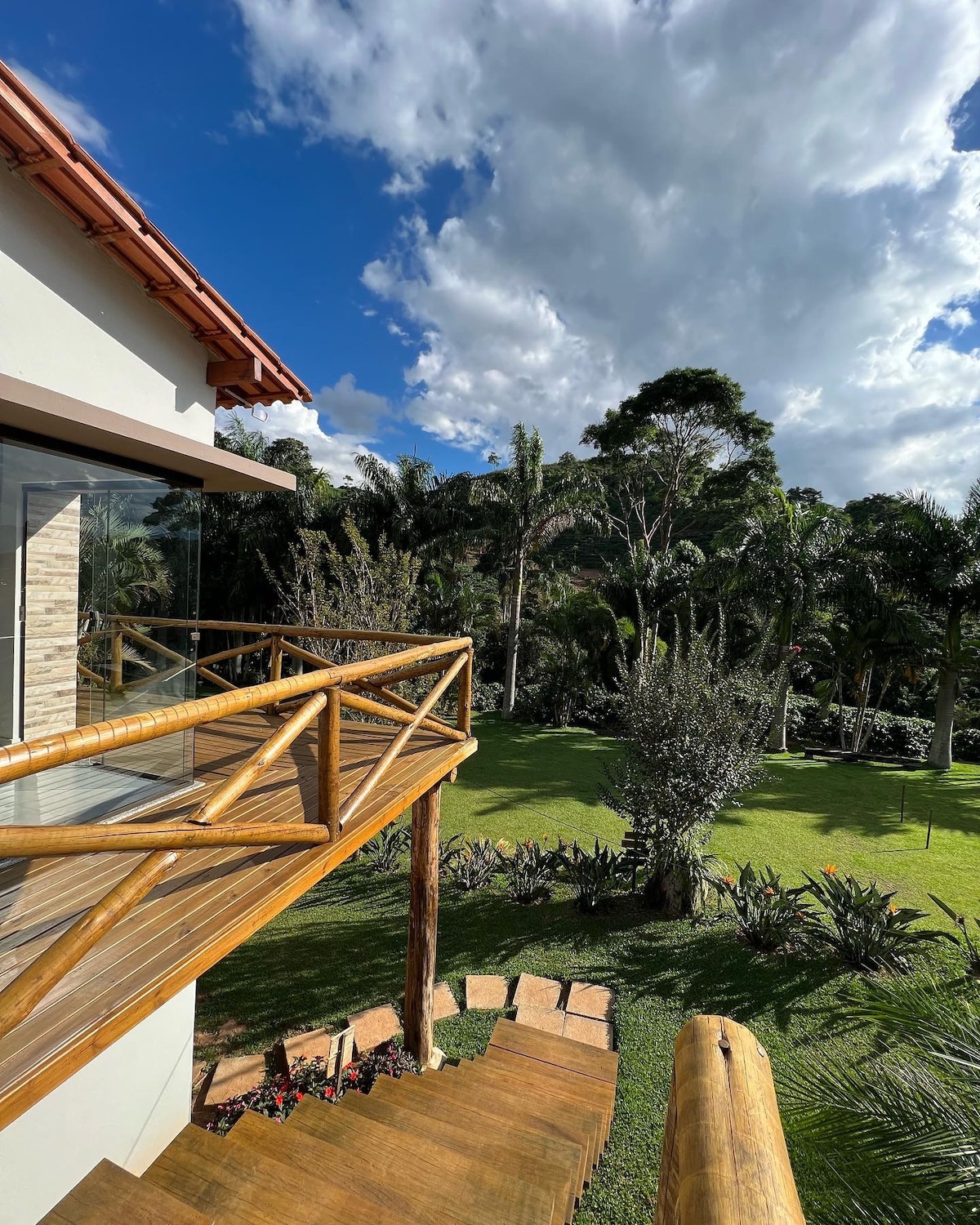 O espaço foi pensado para momentos especiais em família ou pequenos eventos como aniversários, chá revelação e até casamentos íntimos. A casa principal conta com 3 quartos confortáveis, equipados com camas box, banheiro, sala com TV e sofá-cama. A cozinha completa dispõe de utensílios domésticos tudo para você se sentir em casa. Do lado de fora, uma charmosa varanda gourmet é o destaque: Churrasqueira, fogão a lenha, forno, freezer, ilha com banquetas e um quarto externo.