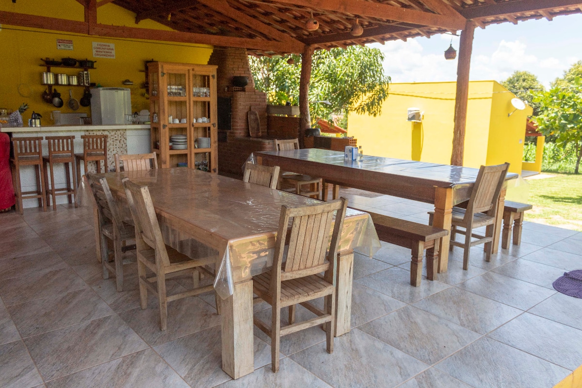 Acomode-se com sua Família - combo bronze Chácara estilo fazenda, construída em 2021, arejada/ventilada, com tv Android + Sky, Wi-Fi piscina grande, varanda e area de churrasco, fogão a lenha, fogão a gás, forno semi-industrial, panela elétrica, tudo para seu conforto em meio a natureza, além de estar perto da Serra da Canastra e tbm há 55 minutos dos Canyons de Capitólio e a 15 minutos do Glória. *s/ roupa de cama e banho *s/ café da manhã