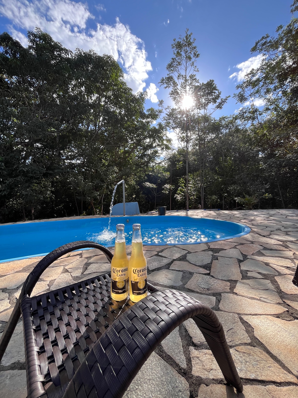 Aqui, o tempo desacelera. Nossa casa é um refúgio acolhedor, perfeito para se conectar com a natureza, descansar e viver momentos mágicos — em casal, com amigos ou em família. A vista para o nosso "quase Jardim de Maytrea” emociona com um pôr do sol de tirar o fôlego. À noite, céu estrelado. De dia, tucanos, araras, beija-flores e seriemas encantam. Trilha exclusiva leva a banho de rio e piscinas naturais na reserva da Fazenda Flor da Mata.