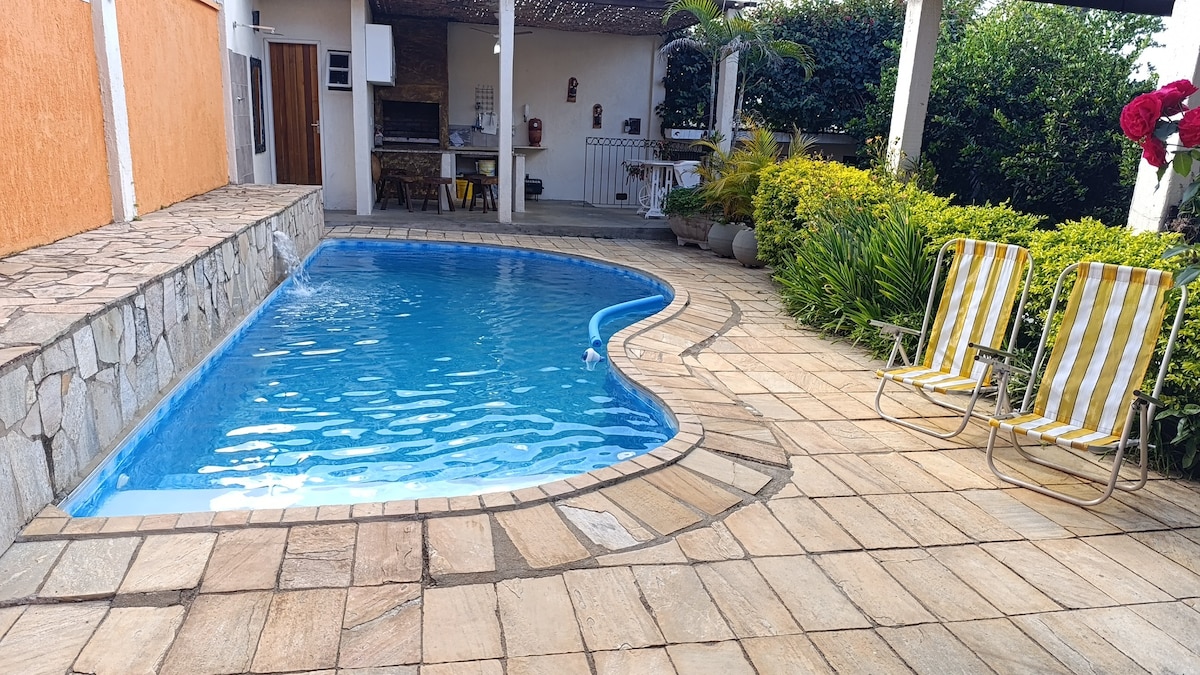 Casa Jardim, linda e com uma decoração super estilosa, oferece 2 suítes com varandas, piscina , cozinha espetacular, espaço gourmet, sala de música e lavabo. O café da manhã deve ser pago a parte e combinado previamente. Podemos personalizar datas comemorativas em nosso café , uma experiência incrível com uma vista linda e muita natureza Oferecemos enxoval completo, utensílios domésticos e de cozinha. Deixamos a disposição dos hóspedes 2 bicicletas.